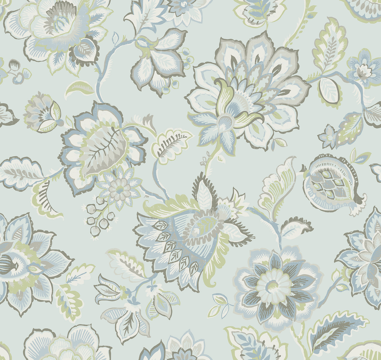 2901-87515 - Corona Light Blue Jacobean Wallpaper. Explore the A-Street Prints Select Collection, an online-exclusive assortment of modern wallpaper designs curated for style and versatility. From subtle, refined textures to bold, statement-making patterns, these high-quality wallcoverings are designed to enhance any room with contemporary appeal and lasting visual impact.. Product width is (in) 27 X 27 Product length (ft). covers About 60.8 square feet. Product Specification: Product Repeat is 25.2. Product Match is Straight. Adhesion Type is Unpasted - Washable - Strippable. Material is Non Woven. Color is Light Blue