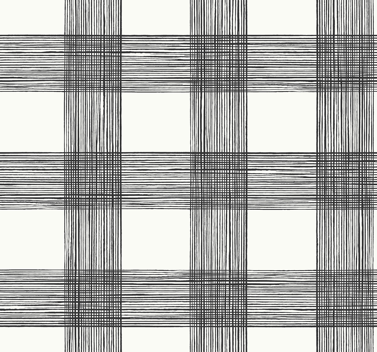 2927-80900 - Scarborough Black Striated Plaid Wallpaper. Add architectural depth to your walls with this bold geometric design. It features clean lines and a sophisticated navy hue. The raised ink finish provides a subtle tactile texture that catches the light. This wallpaper creates a stunning focal point for offices or modern entryways. It is unpasted and designed for a seamless, professional look.. The width in (in) 27 X 27 product length in (ft) covering About 60.8 square feet. Product Match is Straight. Product Repeat is 25.2. Material is Screen Acrylic Coated. Adhesion Type is Unpasted - Washable - Peelable. The Color is Blacks