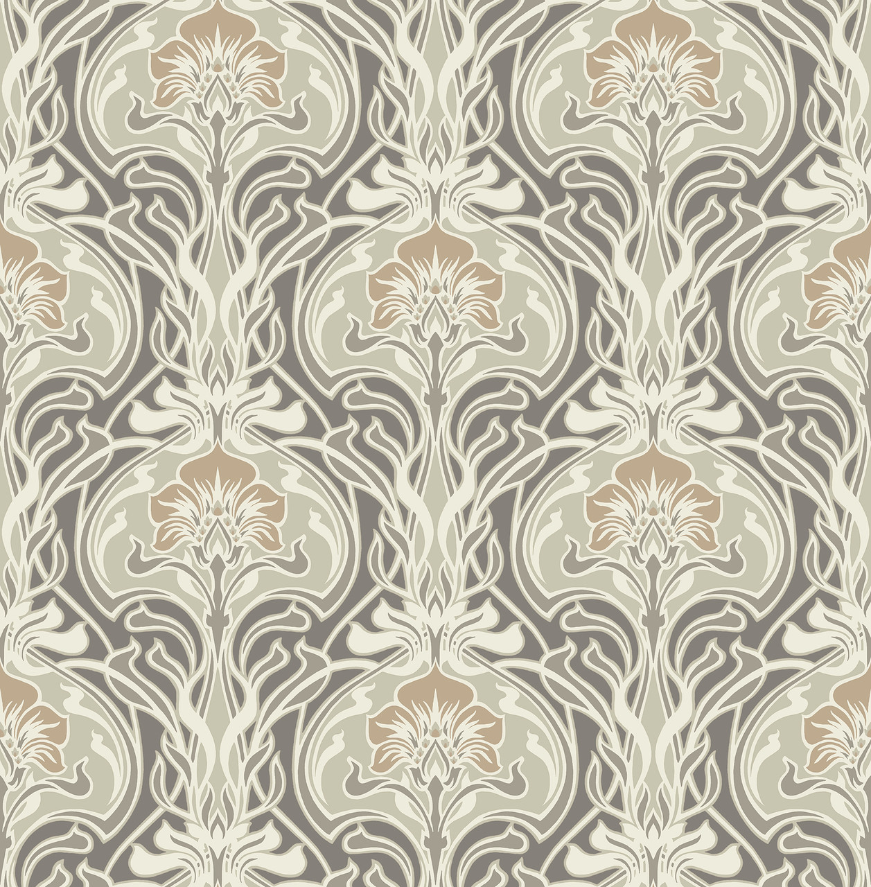 2970-26150 - Mucha Dark Grey Botanical Ogee Wallpaper