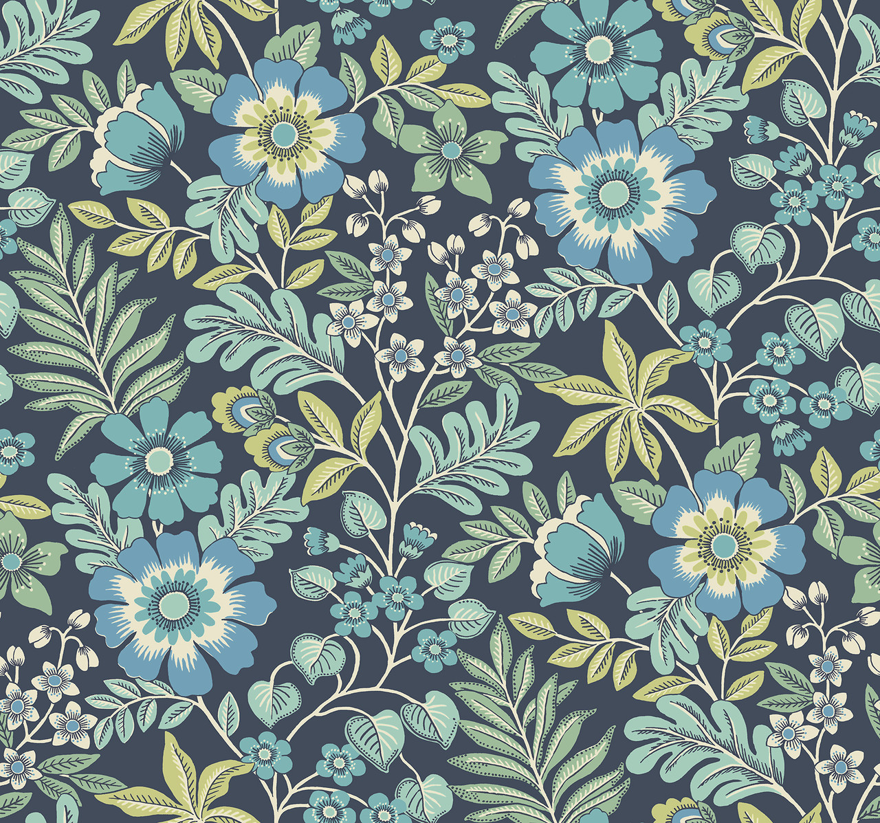 2970-87533 - Voysey Navy Floral Wallpaper. Explore the A-Street Prints Select Collection, an online-exclusive assortment of modern wallpaper designs curated for style and versatility. From subtle, refined textures to bold, statement-making patterns, these high-quality wallcoverings are designed to enhance any room with contemporary appeal and lasting visual impact.. Product width is (in) 27 X 27 Product length (ft). covers About 60.8 square feet. Product Specification: Product Repeat is 25.25. Product Match is Straight. Adhesion Type is Unpasted - Washable - Strippable. Material is Non Woven. Color is Navy