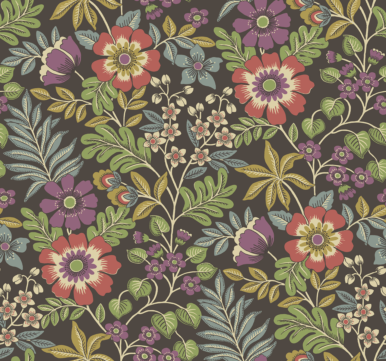 2970-87534 - Voysey Brown Floral Wallpaper. Explore the A-Street Prints Select Collection, an online-exclusive assortment of modern wallpaper designs curated for style and versatility. From subtle, refined textures to bold, statement-making patterns, these high-quality wallcoverings are designed to enhance any room with contemporary appeal and lasting visual impact.. Product width is (in) 27 X 27 Product length (ft). covers About 60.8 square feet. Product Specification: Product Repeat is 25.25. Product Match is Straight. Adhesion Type is Unpasted - Washable - Strippable. Material is Non Woven. Color is Brown