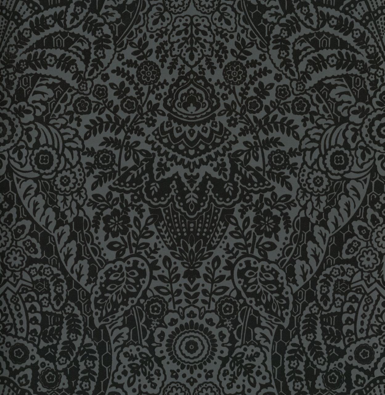 2973-87365 - Maris Charcoal Flock Damask Wallpaper