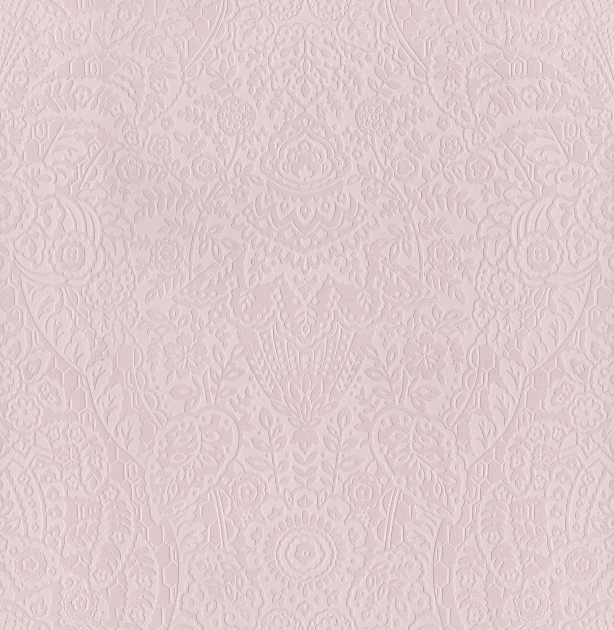 2973-87368 - Maris Pink Flock Damask Wallpaper. Bring the outdoors in with this elegant botanical print. It features delicate ferns in a soft sage green palette. The design adds a refreshing, organic feel to any room. Printed on high-quality non-woven paper, it is durable and easy to strip. Perfect for a calming bedroom or a farmhouse-style living area. . The width in (in) 20.5 X 33 product length in (ft) covering About 56.4 square feet. Product Match is Straight. Product Repeat is 21. Material is Non Woven. Adhesion Type is Unpasted - Washable - Strippable. The Color is Pinks