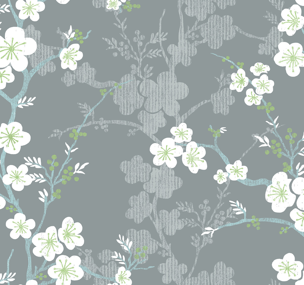 2973-90108 - Nicolette Grey Floral Trail Wallpaper. Bring the outdoors in with this elegant botanical print. It features delicate ferns in a soft sage green palette. The design adds a refreshing, organic feel to any room. Printed on high-quality non-woven paper, it is durable and easy to strip. Perfect for a calming bedroom or a farmhouse-style living area. . The width in (in) 27 X 27 product length in (ft) covering About 60.8 square feet. Product Match is Half Drop. Product Repeat is 25.25. Material is Acrylic Coated Paper. Adhesion Type is Unpasted - Washable - Peelable. The Color is Greys