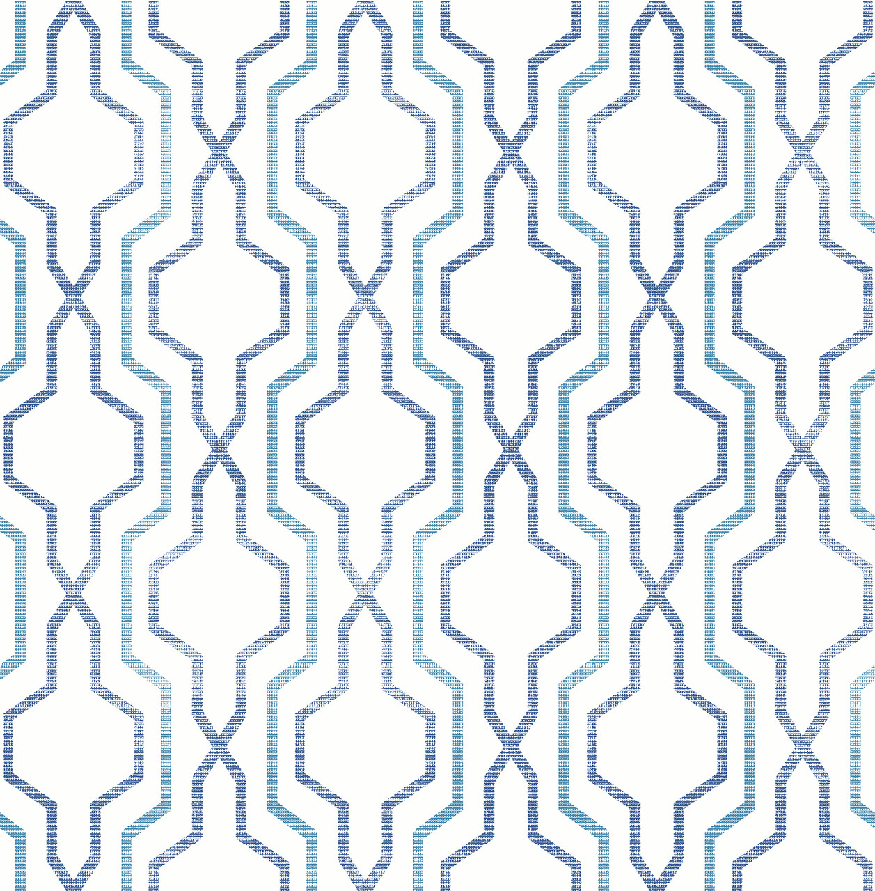2973-90601 - Rion Blue Trellis Wallpaper. Bring the outdoors in with this elegant botanical print. It features delicate ferns in a soft sage green palette. The design adds a refreshing, organic feel to any room. Printed on high-quality non-woven paper, it is durable and easy to strip. Perfect for a calming bedroom or a farmhouse-style living area. . The width in (in) 20.5 X 33 product length in (ft) covering About 56.4 square feet. Product Match is Straight. Product Repeat is 21. Material is Acrylic Coated Paper. Adhesion Type is Unpasted - Washable - Peelable. The Color is Blues