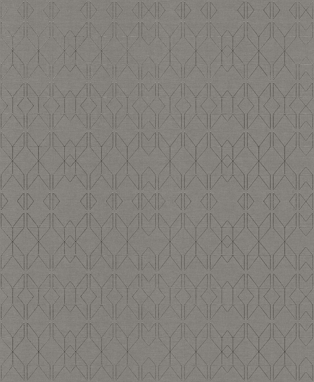 2976-86405 - Paititi Sterling Geometric Trellis Wallpaper. Bring the outdoors in with this elegant botanical print. It features delicate ferns in a soft sage green palette. The design adds a refreshing, organic feel to any room. Printed on high-quality non-woven paper, it is durable and easy to strip. Perfect for a calming bedroom or a farmhouse-style living area. . The width in (in) 20.9 X 33 product length in (ft) covering About 57.5 square feet. Product Match is Drop. Product Repeat is 12.5. Material is Foil on Non Woven. Adhesion Type is Unpasted - Washable - Strippable. The Color is Greys