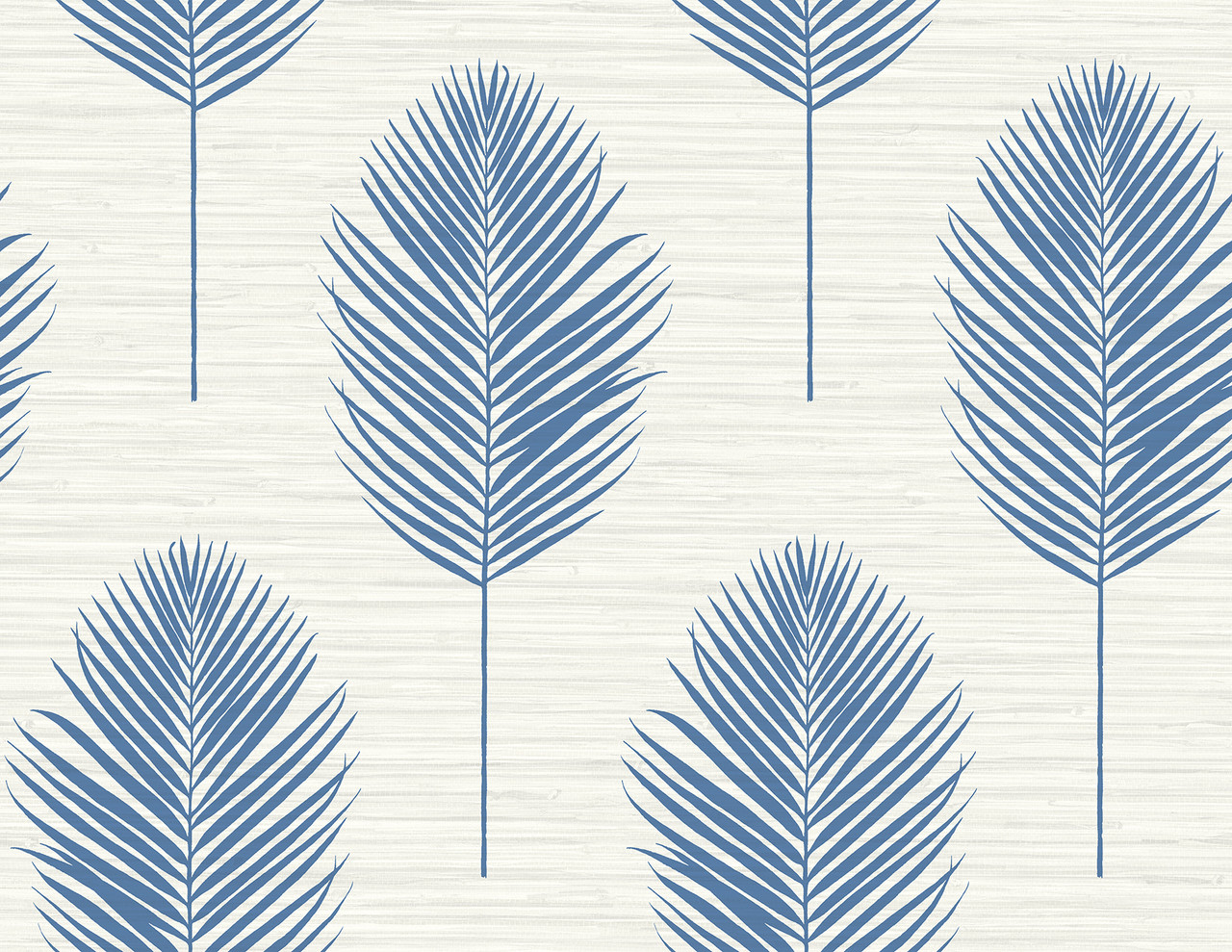 2988-70212 - Bali Blue Fern Wallpaper. Bring the outdoors in with this elegant botanical print. It features delicate ferns in a soft sage green palette. The design adds a refreshing, organic feel to any room. Printed on high-quality non-woven paper, it is durable and easy to strip. Perfect for a calming bedroom or a farmhouse-style living area. . The width in (in) 27 X 27 product length in (ft) covering About 60.8 square feet. Product Match is Straight. Product Repeat is 20.9. Material is Vinyl. Adhesion Type is Unpasted - Scrubbable - Peelable. The Color is Blues