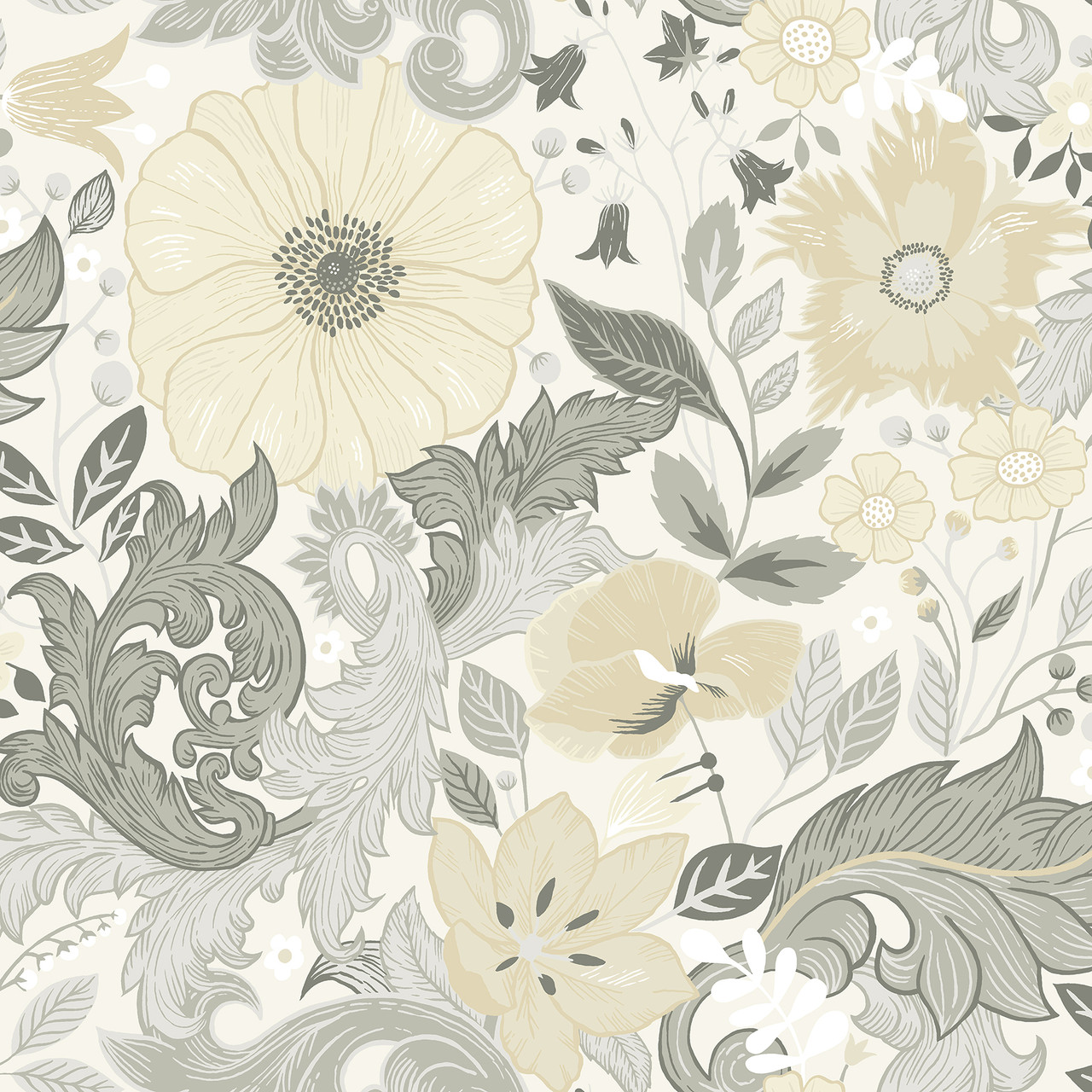 2999-13106 - Victoria Pastel Floral Nouveau Wallpaper. Bring the outdoors in with this elegant botanical print. It features delicate ferns in a soft sage green palette. The design adds a refreshing, organic feel to any room. Printed on high-quality non-woven paper, it is durable and easy to strip. Perfect for a calming bedroom or a farmhouse-style living area. . The width in (in) 20.9 X 33 product length in (ft) covering About 57.5 square feet. Product Match is Half Drop. Product Repeat is 20.9. Material is Non Woven. Adhesion Type is Unpasted - Washable - Strippable. The Color is Whites & Off-Whites