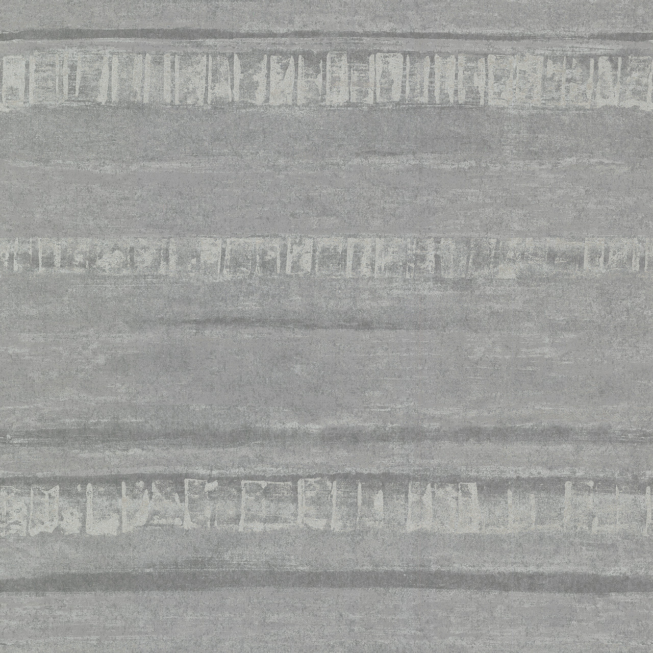 4019-86418 - Rakasa Pewter Distressed Stripe Wallpaper. Add architectural depth to your walls with this bold geometric design. It features clean lines and a sophisticated navy hue. The raised ink finish provides a subtle tactile texture that catches the light. This wallpaper creates a stunning focal point for offices or modern entryways. It is unpasted and designed for a seamless, professional look.. The width in (in) 20.9 X 33 product length in (ft) covering About 57.5 square feet. Product Match is Straight. Product Repeat is 25.2. Material is Foil on Non Woven. Adhesion Type is Unpasted - Washable - Strippable. The Color is Greys