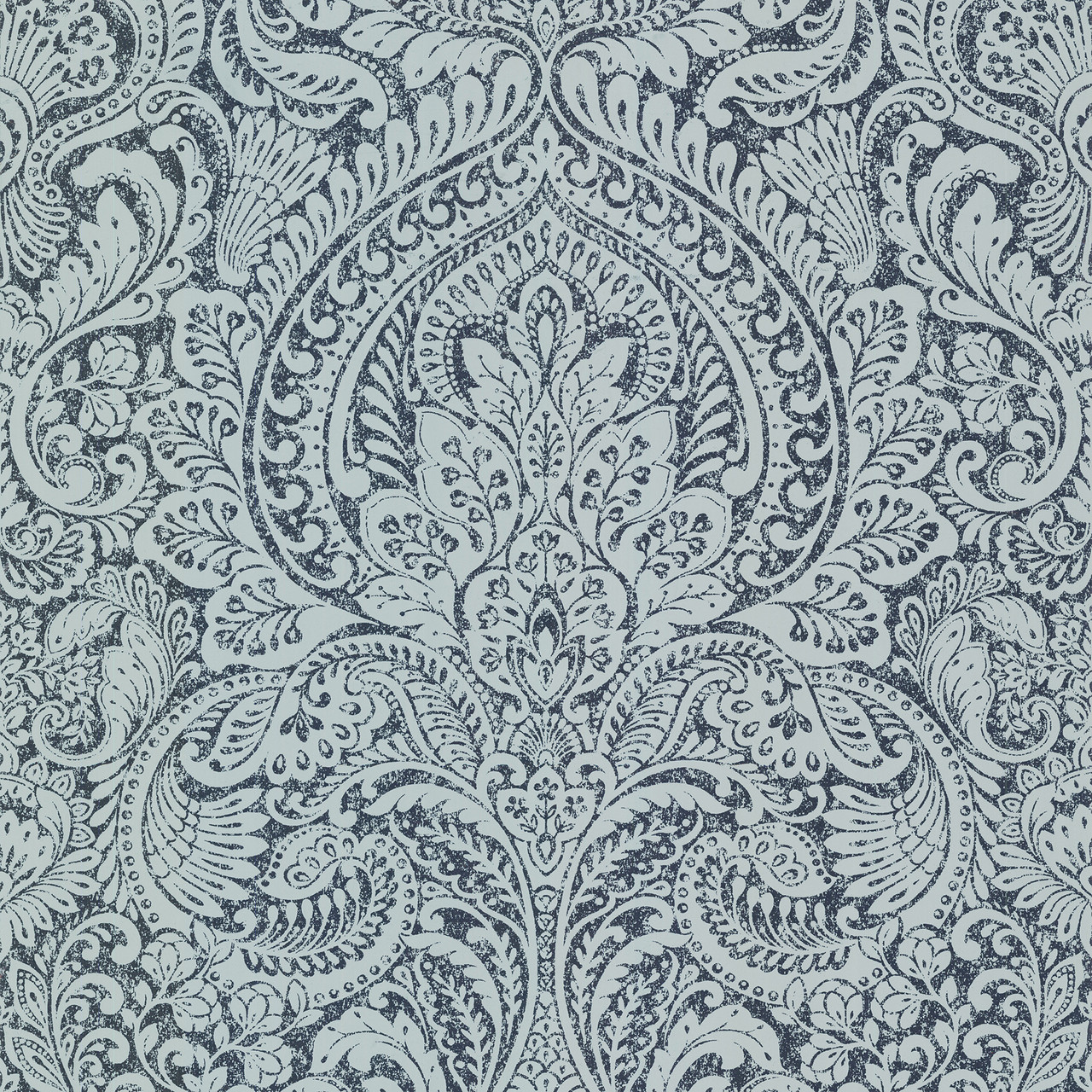 4019-86442 - Artemis Sapphire Floral Damask Wallpaper. Add architectural depth to your walls with this bold geometric design. It features clean lines and a sophisticated navy hue. The raised ink finish provides a subtle tactile texture that catches the light. This wallpaper creates a stunning focal point for offices or modern entryways. It is unpasted and designed for a seamless, professional look.. The width in (in) 20.9 X 33 product length in (ft) covering About 57.5 square feet. Product Match is Straight. Product Repeat is 25.2. Material is Foil on Non Woven. Adhesion Type is Unpasted - Washable - Strippable. The Color is Metallics