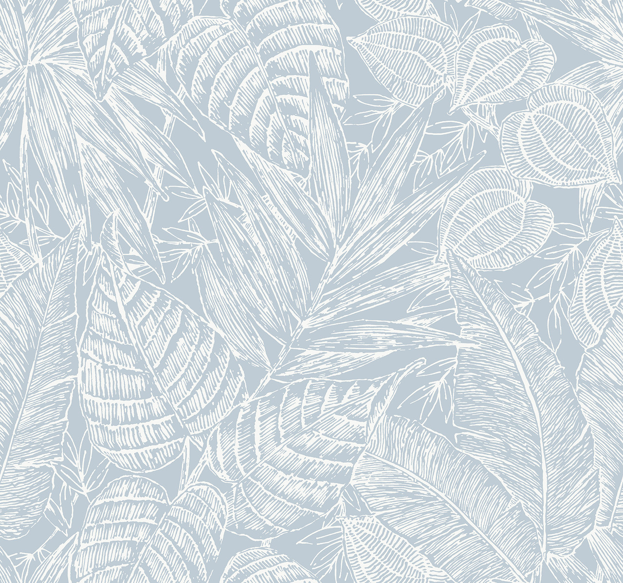 4034-72119 - Brentwood Sky Blue Palm Leaves Wallpaper. Add architectural depth to your walls with this bold geometric design. It features clean lines and a sophisticated navy hue. The raised ink finish provides a subtle tactile texture that catches the light. This wallpaper creates a stunning focal point for offices or modern entryways. It is unpasted and designed for a seamless, professional look.. The width in (in) 27 X 27 product length in (ft) covering About 60.8 square feet. Product Match is Straight. Product Repeat is 25.25. Material is Paper Weave Grasscloth. Adhesion Type is Unpasted - Dust and Vacuum - Peelable. The Color is Blues