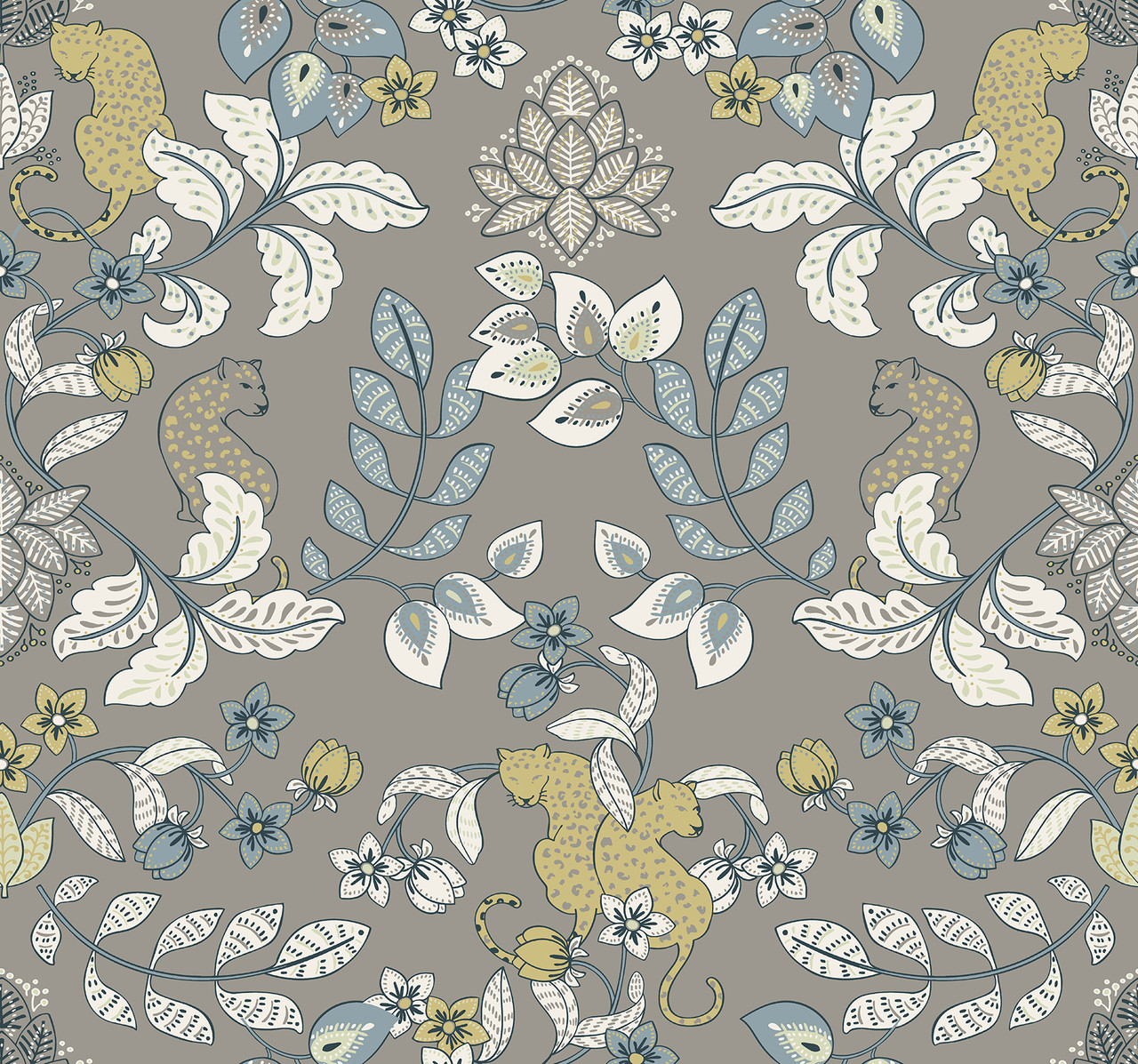4034-72134 - Getty Grey Jungle Damask Wallpaper
