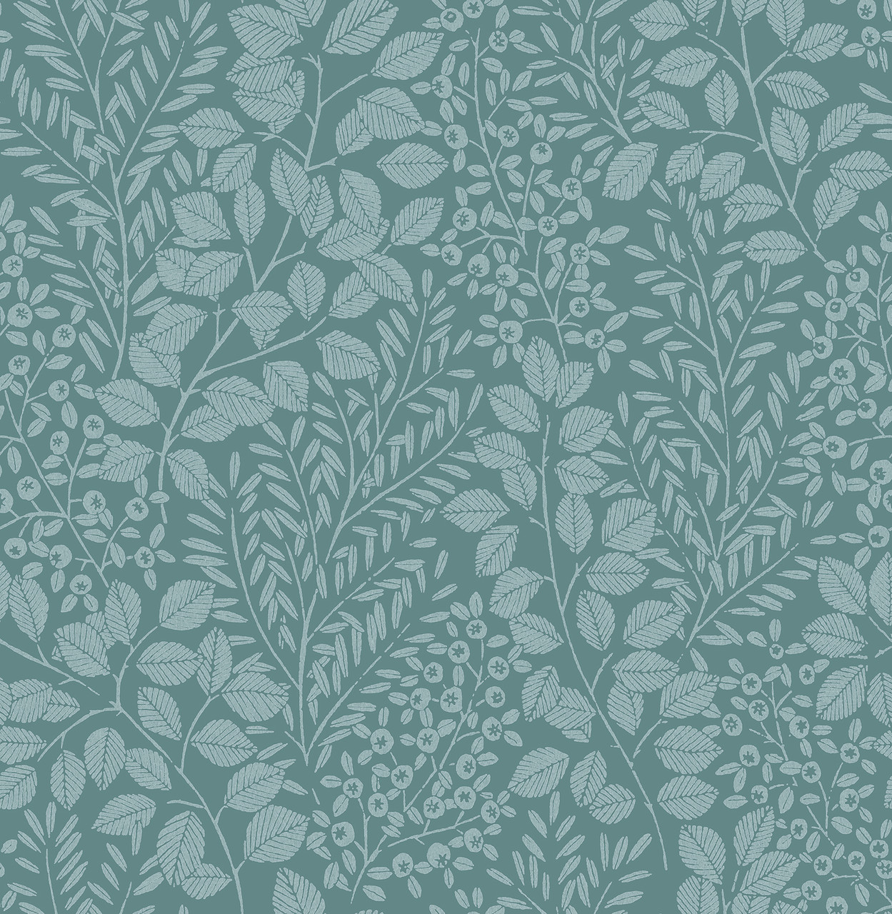 4066-26518 - Elin Sky Blue Berry Botanical Wallpaper. Bring the outdoors in with this elegant botanical print. It features delicate ferns in a soft sage green palette. The design adds a refreshing, organic feel to any room. Printed on high-quality non-woven paper, it is durable and easy to strip. Perfect for a calming bedroom or a farmhouse-style living area. . The width in (in) 20.5 X 33 product length in (ft) covering About 56.4 square feet. Product Match is Straight. Product Repeat is 20.9. Material is Non Woven. Adhesion Type is Unpasted - Washable - Strippable. The Color is Blues