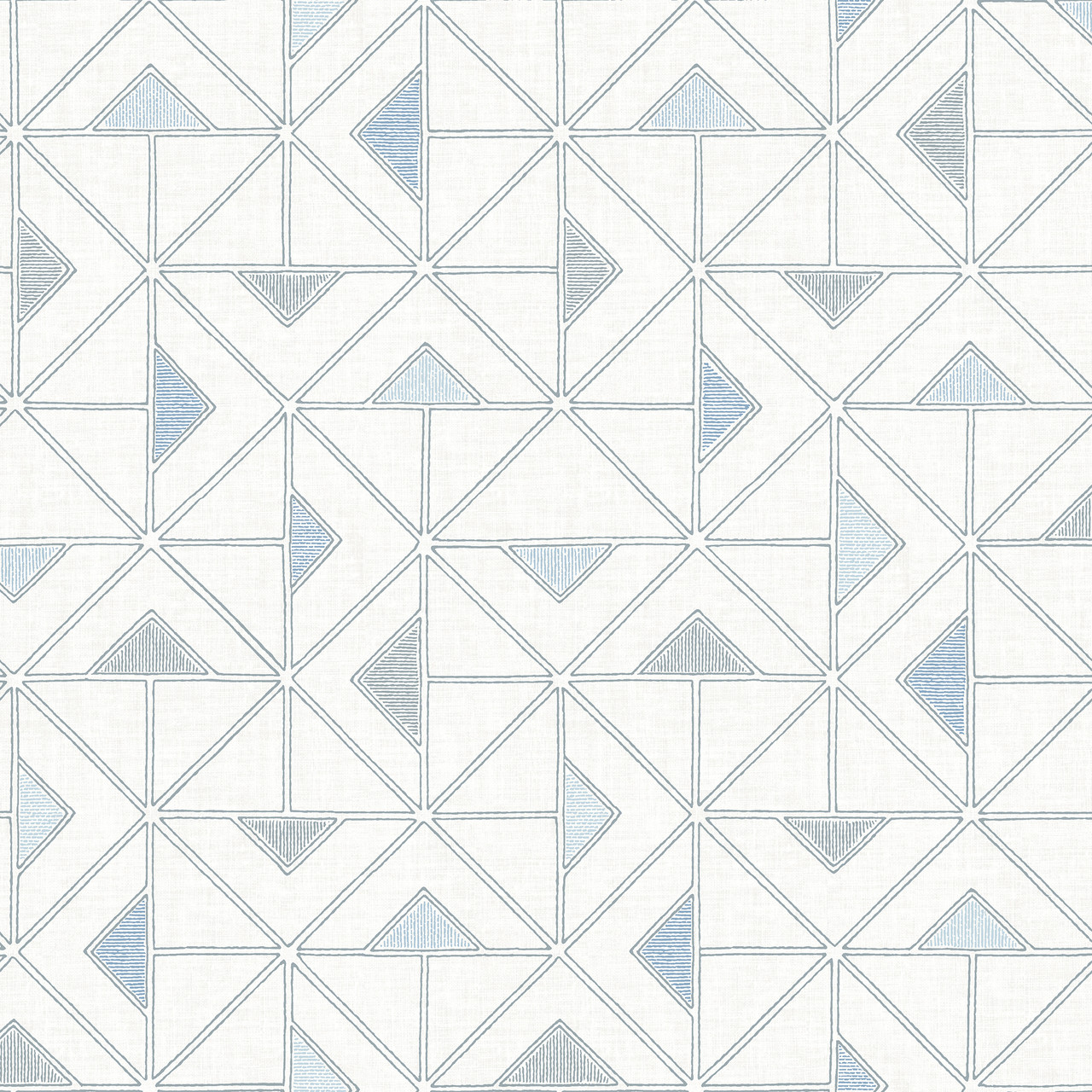 4074-26635 - Jekyl Blue Triangles Wallpaper. Bring the outdoors in with this elegant botanical print. It features delicate ferns in a soft sage green palette. The design adds a refreshing, organic feel to any room. Printed on high-quality non-woven paper, it is durable and easy to strip. Perfect for a calming bedroom or a farmhouse-style living area. . The width in (in) 20.5 X 33 product length in (ft) covering About 56.4 square feet. Product Match is Drop. Product Repeat is 20.9. Material is Non Woven. Adhesion Type is Unpasted - Washable - Strippable. The Color is Blues