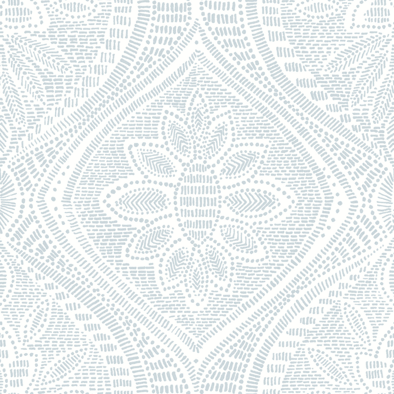 4074-26642 - Scout Light Blue Floral Ogee Wallpaper. Bring the outdoors in with this elegant botanical print. It features delicate ferns in a soft sage green palette. The design adds a refreshing, organic feel to any room. Printed on high-quality non-woven paper, it is durable and easy to strip. Perfect for a calming bedroom or a farmhouse-style living area. . The width in (in) 20.5 X 33 product length in (ft) covering About 56.4 square feet. Product Match is Straight. Product Repeat is 10.4. Material is Non Woven. Adhesion Type is Unpasted - Washable - Strippable. The Color is Blues