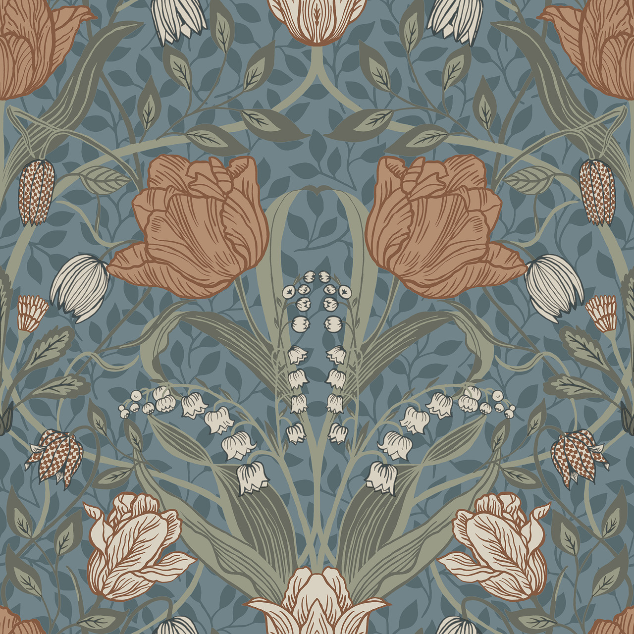 4080-33009 - Fillippa Blue Tulip Wallpaper. Bring the outdoors in with this elegant botanical print. It features delicate ferns in a soft sage green palette. The design adds a refreshing, organic feel to any room. Printed on high-quality non-woven paper, it is durable and easy to strip. Perfect for a calming bedroom or a farmhouse-style living area. . The width in (in) 20.9 X 33 product length in (ft) covering About 57.5 square feet. Product Match is Straight. Product Repeat is 20.9. Material is Non Woven. Adhesion Type is Unpasted - Washable - Strippable. The Color is Blues