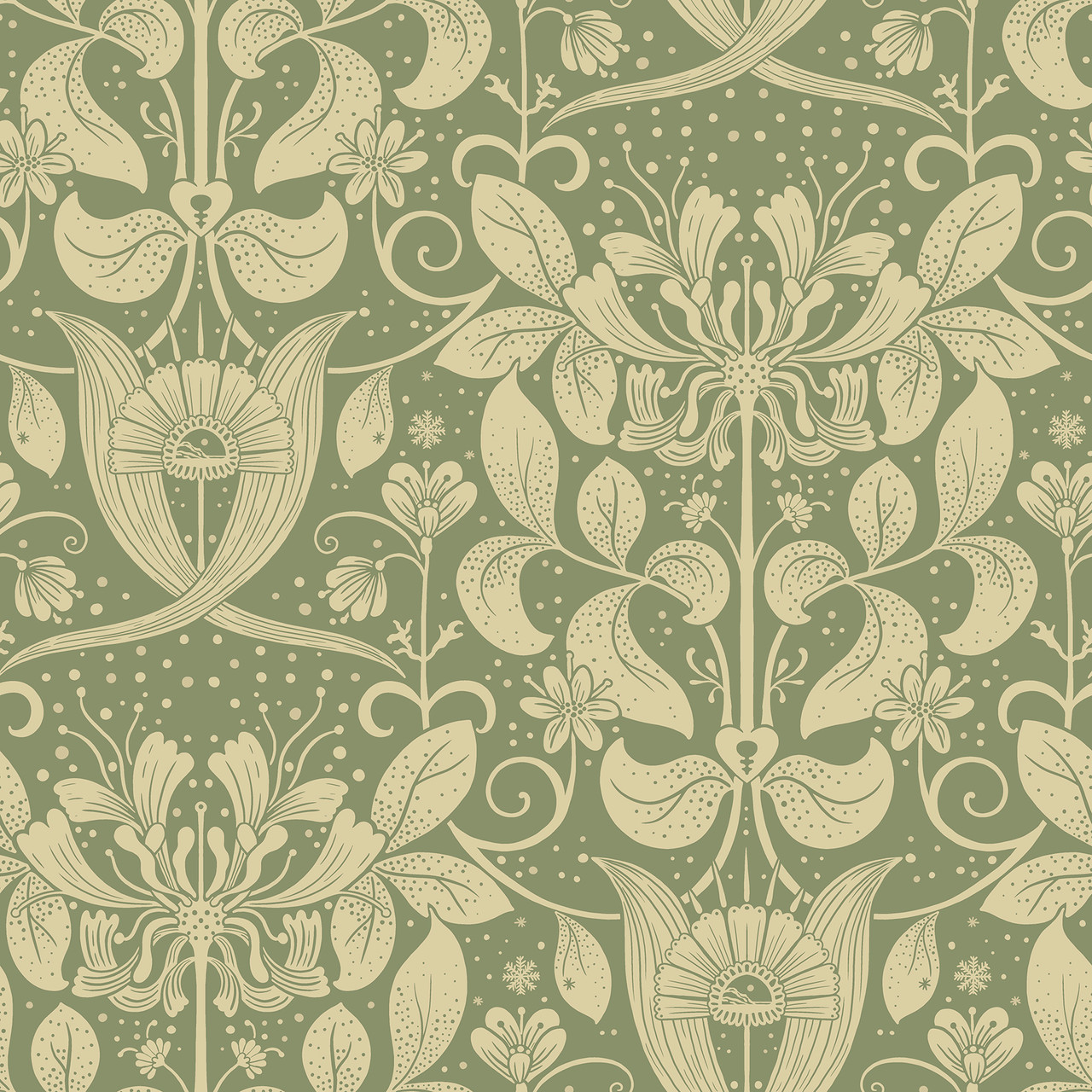 4080-83126 - Berit Green Floral Crest Wallpaper. Bring the outdoors in with this elegant botanical print. It features delicate ferns in a soft sage green palette. The design adds a refreshing, organic feel to any room. Printed on high-quality non-woven paper, it is durable and easy to strip. Perfect for a calming bedroom or a farmhouse-style living area. . The width in (in) 20.9 X 33 product length in (ft) covering About 57.5 square feet. Product Match is Straight. Product Repeat is 20.9. Material is Non Woven. Adhesion Type is Unpasted - Washable - Strippable. The Color is Greens