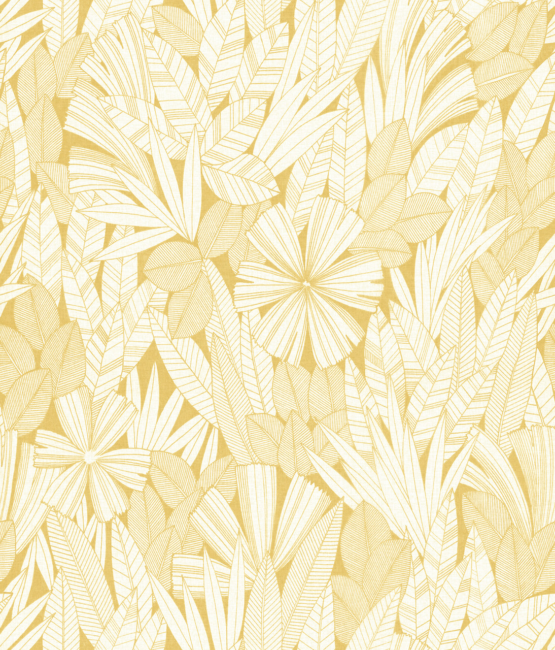 4081-26343 - Bannon Yellow Leaves Wallpaper. Bring the outdoors in with this elegant botanical print. It features delicate ferns in a soft sage green palette. The design adds a refreshing, organic feel to any room. Printed on high-quality non-woven paper, it is durable and easy to strip. Perfect for a calming bedroom or a farmhouse-style living area. . The width in (in) 20.5 X 33 product length in (ft) covering About 56.4 square feet. Product Match is Straight. Product Repeat is 24. Material is Non Woven. Adhesion Type is Unpasted - Washable - Strippable. The Color is Yellows