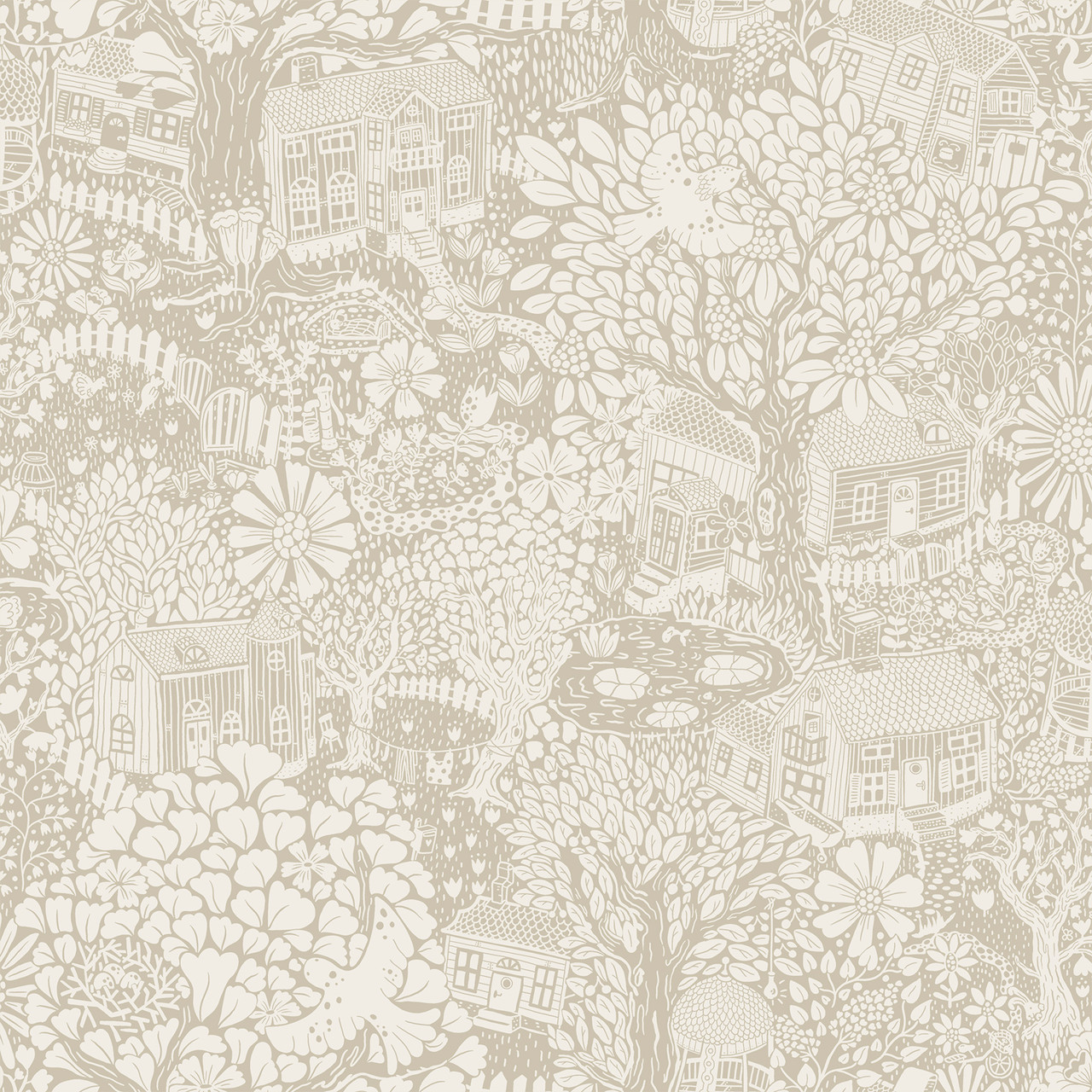 4111-63006 - Bygga Bo Light Grey Woodland Village Wallpaper