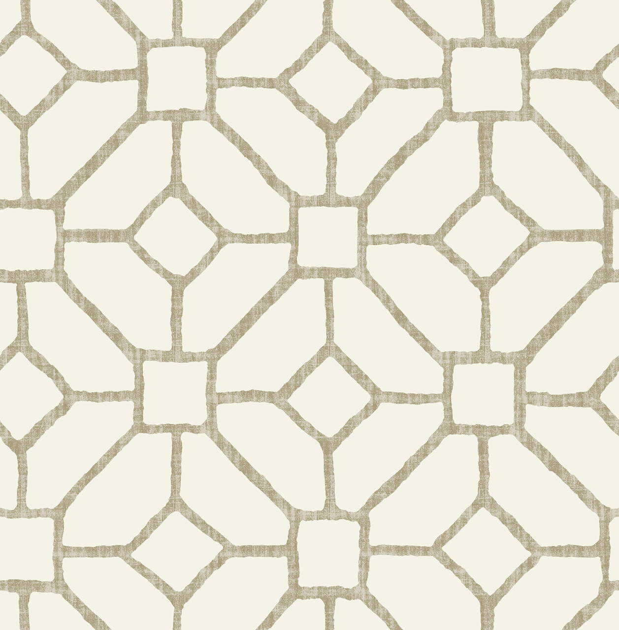 4120-26829 - Addis Beige Trellis Wallpaper. Add architectural depth to your walls with this bold geometric design. It features clean lines and a sophisticated navy hue. The raised ink finish provides a subtle tactile texture that catches the light. This wallpaper creates a stunning focal point for offices or modern entryways. It is unpasted and designed for a seamless, professional look.. The width in (in) 20.5 X 33 product length in (ft) covering About 56.4 square feet. Product Match is Straight. Product Repeat is 20.9. Material is Non Woven. Adhesion Type is Unpasted - Washable - Strippable. The Color is Neutrals