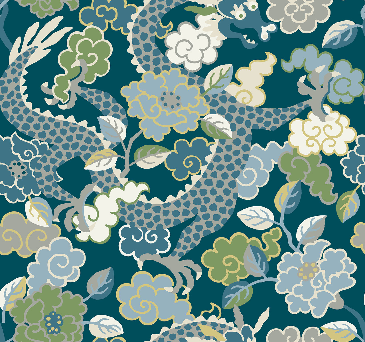 4120-72008 - Yanci Teal Dragon Wallpaper. Add architectural depth to your walls with this bold geometric design. It features clean lines and a sophisticated navy hue. The raised ink finish provides a subtle tactile texture that catches the light. This wallpaper creates a stunning focal point for offices or modern entryways. It is unpasted and designed for a seamless, professional look.. The width in (in) 27 X 27 product length in (ft) covering About 60.8 square feet. Product Match is Straight. Product Repeat is 25.25. Material is Non Woven. Adhesion Type is Unpasted - Washable - Strippable. The Color is Blues