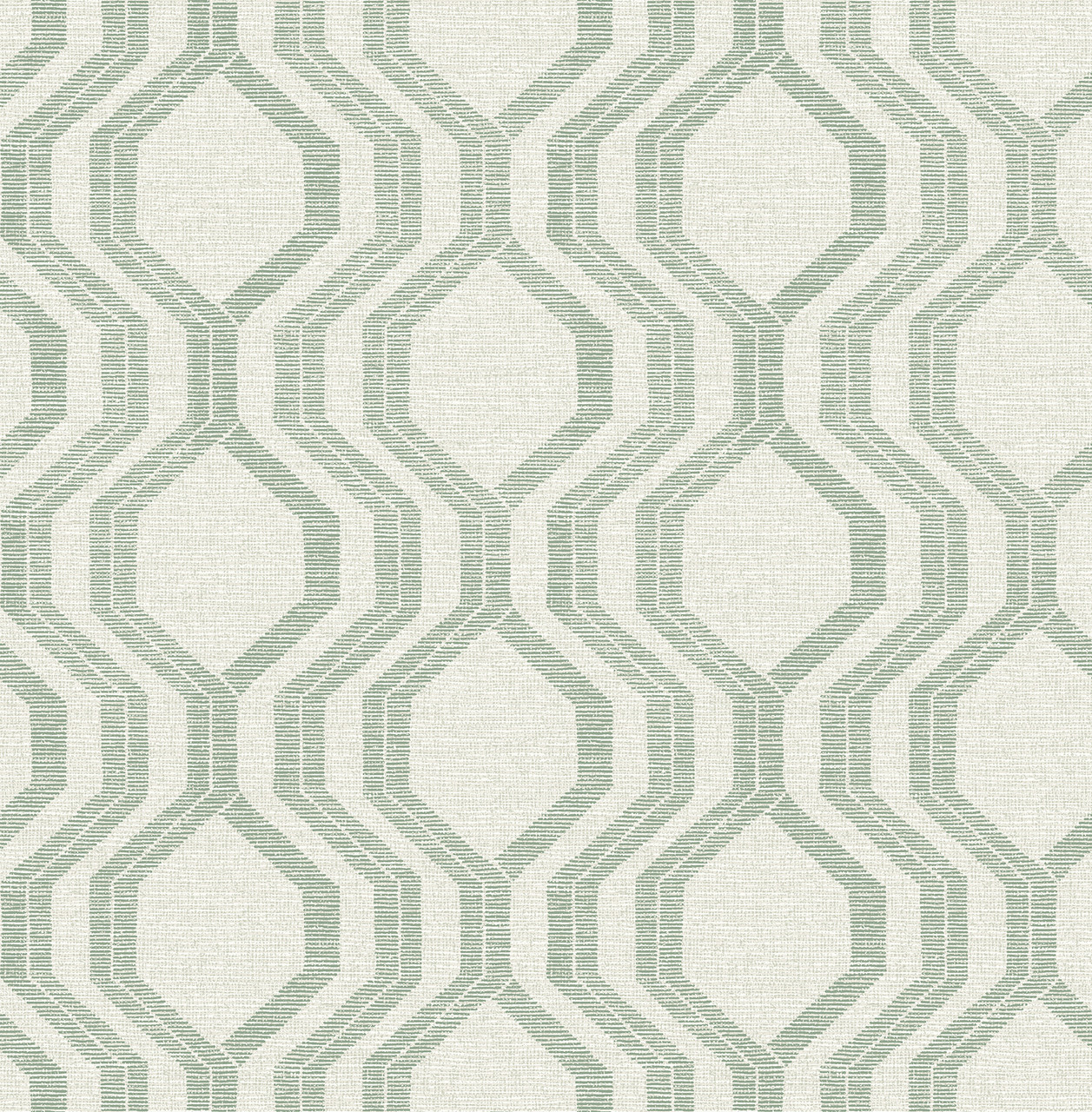 4141-27105 - Burton Green Modern Ogee Wallpaper. Enjoy the luxury of grasscloth without the high maintenance. This faux-woven design mimics the look of natural fibers beautifully. Its soft grey tones provide a neutral, sophisticated backdrop for any decor. Unlike real sisal, this non-woven wallpaper is washable and easy to clean. It is the perfect choice for coastal-inspired or "quiet luxury" interiors.. The width in (in) 20.5 X 33 product length in (ft) covering About 56.4 square feet. Product Match is Straight. Product Repeat is 20.86. Material is Non Woven. Adhesion Type is Unpasted - Washable - Strippable. The Color is Greens