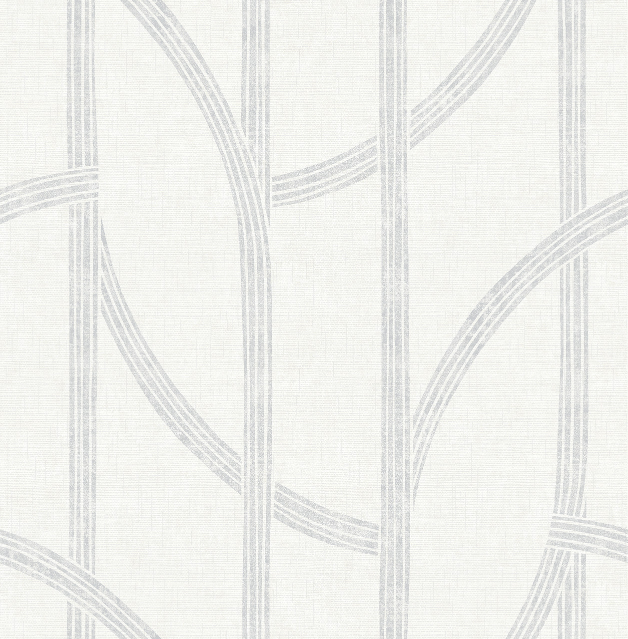 4141-27138 - Harlow Silver Curved Contours Wallpaper. Enjoy the luxury of grasscloth without the high maintenance. This faux-woven design mimics the look of natural fibers beautifully. Its soft grey tones provide a neutral, sophisticated backdrop for any decor. Unlike real sisal, this non-woven wallpaper is washable and easy to clean. It is the perfect choice for coastal-inspired or "quiet luxury" interiors.. The width in (in) 20.5 X 33 product length in (ft) covering About 56.4 square feet. Product Match is Straight. Product Repeat is 20.86. Material is Non Woven. Adhesion Type is Unpasted - Washable - Strippable. The Color is Metallics