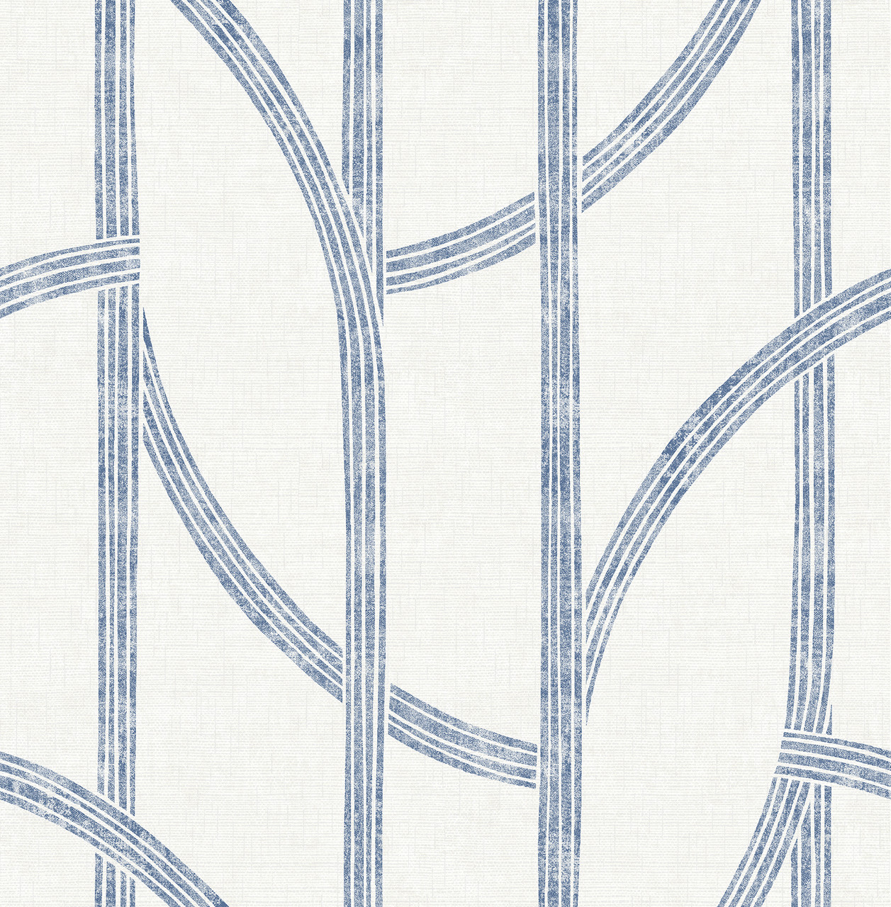 4141-27142 - Harlow Indigo Curved Contours Wallpaper. Enjoy the luxury of grasscloth without the high maintenance. This faux-woven design mimics the look of natural fibers beautifully. Its soft grey tones provide a neutral, sophisticated backdrop for any decor. Unlike real sisal, this non-woven wallpaper is washable and easy to clean. It is the perfect choice for coastal-inspired or "quiet luxury" interiors.. The width in (in) 20.5 X 33 product length in (ft) covering About 56.4 square feet. Product Match is Straight. Product Repeat is 20.86. Material is Non Woven. Adhesion Type is Unpasted - Washable - Strippable. The Color is Blues