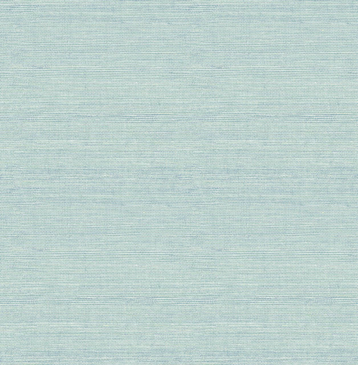 4143-24282 - Agave Aqua Faux Grasscloth Wallpaper. Enjoy the luxury of grasscloth without the high maintenance. This faux-woven design mimics the look of natural fibers beautifully. Its soft grey tones provide a neutral, sophisticated backdrop for any decor. Unlike real sisal, this non-woven wallpaper is washable and easy to clean. It is the perfect choice for coastal-inspired or "quiet luxury" interiors.. The width in (in) 20.5 X 33 product length in (ft) covering About 56.4 square feet. Product Match is Straight. Product Repeat is 20.9. Material is Non Woven. Adhesion Type is Unpasted - Washable - Strippable. The Color is Blues