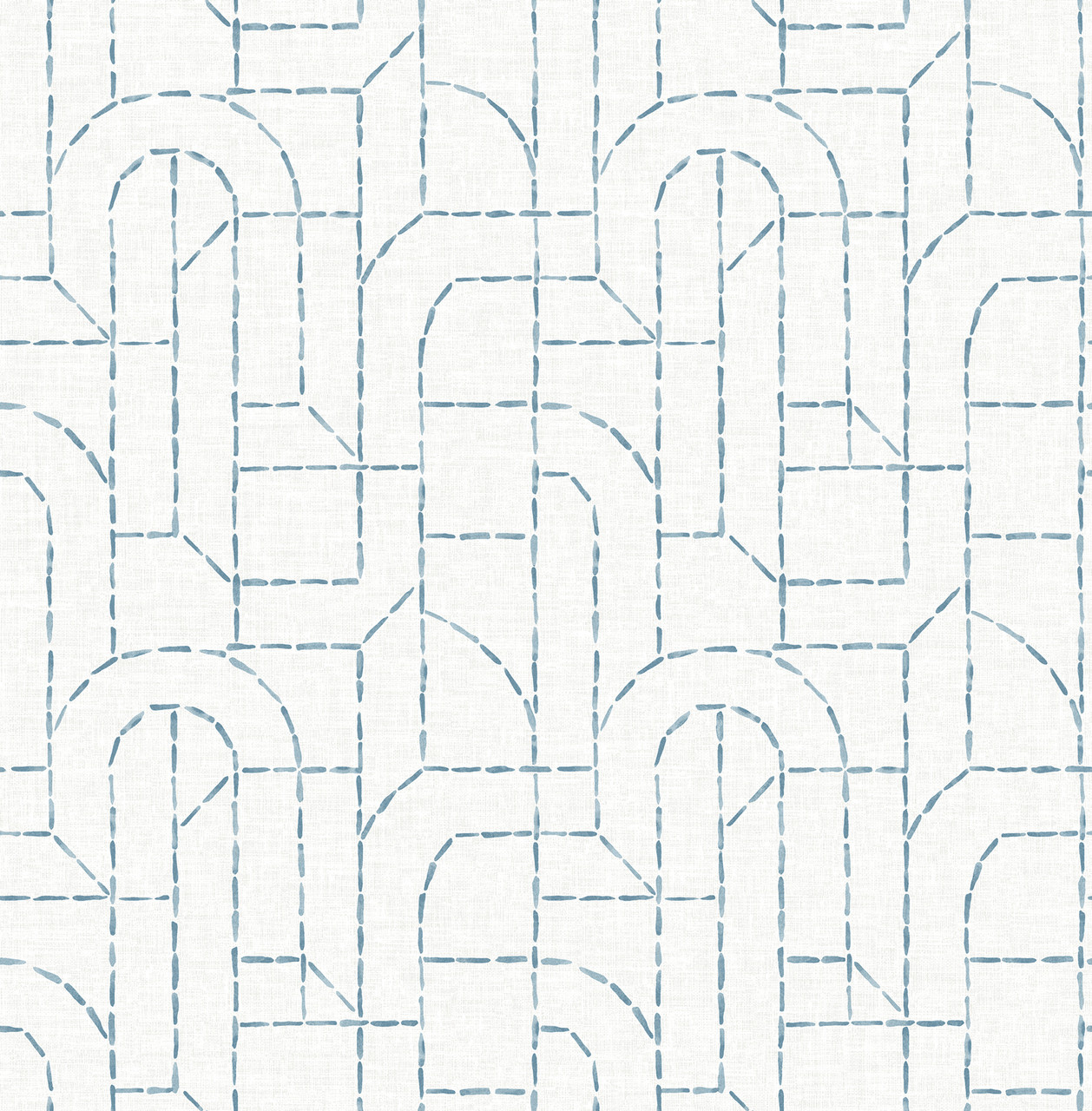4146-27222 - Integrity Blue Arched Outlines Wallpaper. Enjoy the luxury of grasscloth without the high maintenance. This faux-woven design mimics the look of natural fibers beautifully. Its soft grey tones provide a neutral, sophisticated backdrop for any decor. Unlike real sisal, this non-woven wallpaper is washable and easy to clean. It is the perfect choice for coastal-inspired or "quiet luxury" interiors.. The width in (in) 20.5 X 33 product length in (ft) covering About 56.4 square feet. Product Match is Straight. Product Repeat is 20.86. Material is Non Woven. Adhesion Type is Unpasted - Washable - Strippable. The Color is Blues