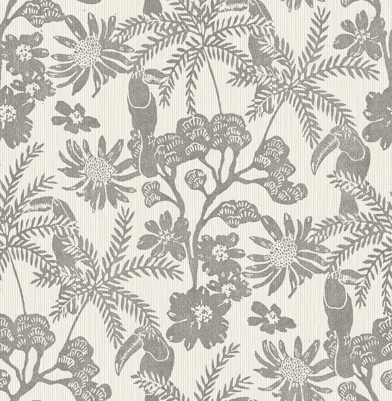 4146-27247 - Jacaranda Stone Tropical Trail Wallpaper. Enjoy the luxury of grasscloth without the high maintenance. This faux-woven design mimics the look of natural fibers beautifully. Its soft grey tones provide a neutral, sophisticated backdrop for any decor. Unlike real sisal, this non-woven wallpaper is washable and easy to clean. It is the perfect choice for coastal-inspired or "quiet luxury" interiors.. The width in (in) 20.5 X 33 product length in (ft) covering About 56.4 square feet. Product Match is Straight. Product Repeat is 20.86. Material is Non Woven. Adhesion Type is Unpasted - Washable - Strippable. The Color is Greys