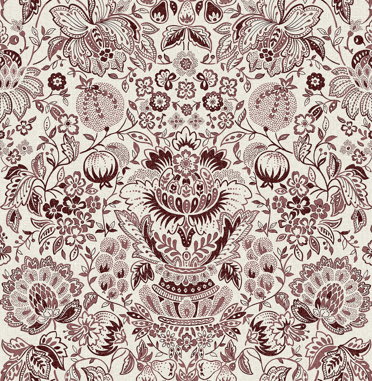 4147-27373 - Blanche Plum Floral Damask Wallpaper. Infuse your home with charm and personality. This whimsical topiary print features blooming flowers and small songbirds. The warm apricot background adds a cheerful glow to your space. It balances classic Chinoiserie style with a modern, playful twist. Ideal for a vibrant powder room or a creative dining space.. The width in (in) 20.5 X 33 product length in (ft) covering About 56.4 square feet. Product Match is Straight. Product Repeat is 20.9. Material is Non Woven. Adhesion Type is Unpasted - Washable - Strippable. The Color is Purples