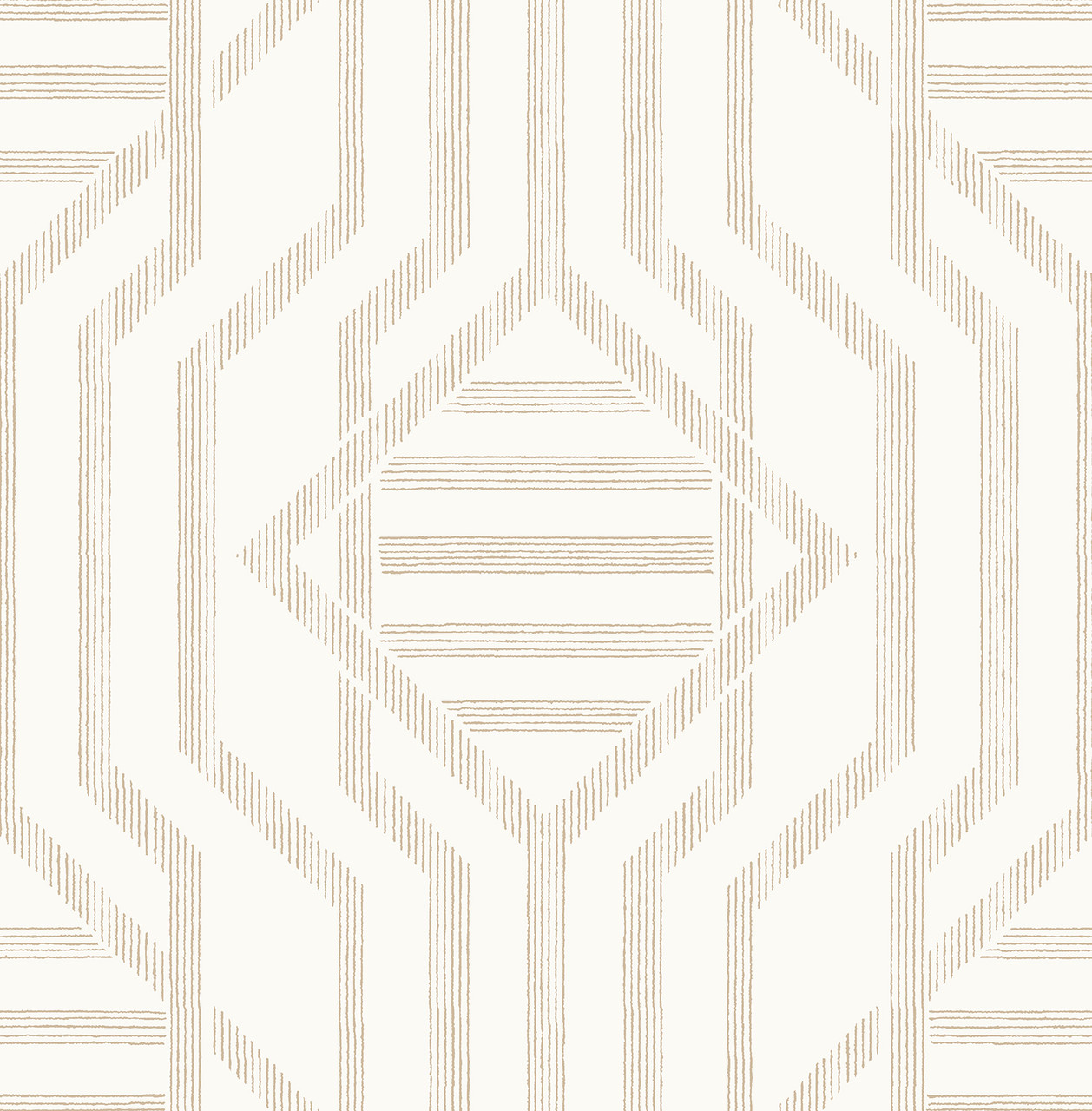 4147-27404 - Essex Wheat Geometric Wallpaper. Infuse your home with charm and personality. This whimsical topiary print features blooming flowers and small songbirds. The warm apricot background adds a cheerful glow to your space. It balances classic Chinoiserie style with a modern, playful twist. Ideal for a vibrant powder room or a creative dining space.. The width in (in) 20.5 X 33 product length in (ft) covering About 56.4 square feet. Product Match is Straight. Product Repeat is 20.9. Material is Non Woven. Adhesion Type is Unpasted - Washable - Strippable. The Color is Browns