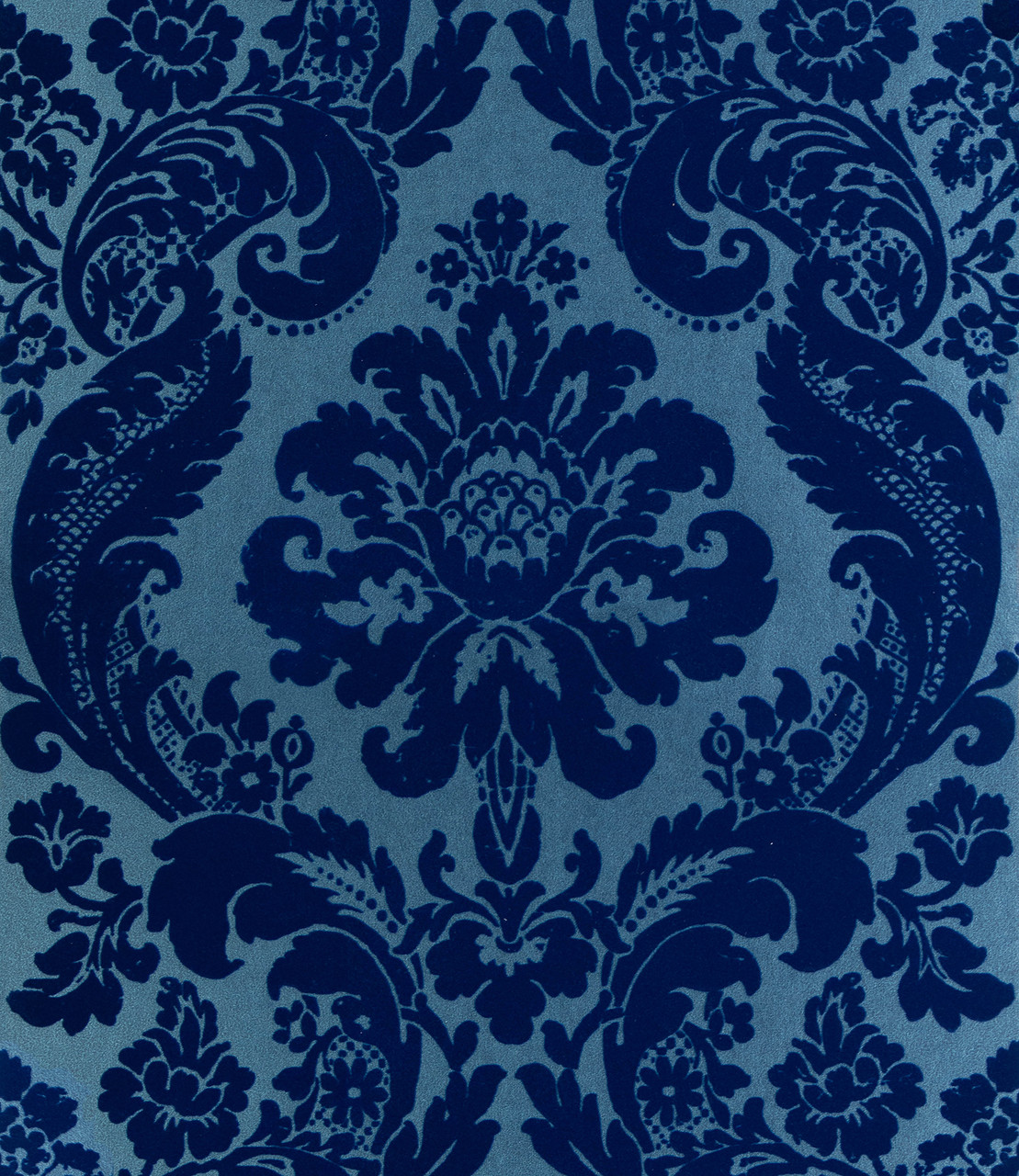 4147-87310 - Shadow Blue Flocked Damask Wallpaper