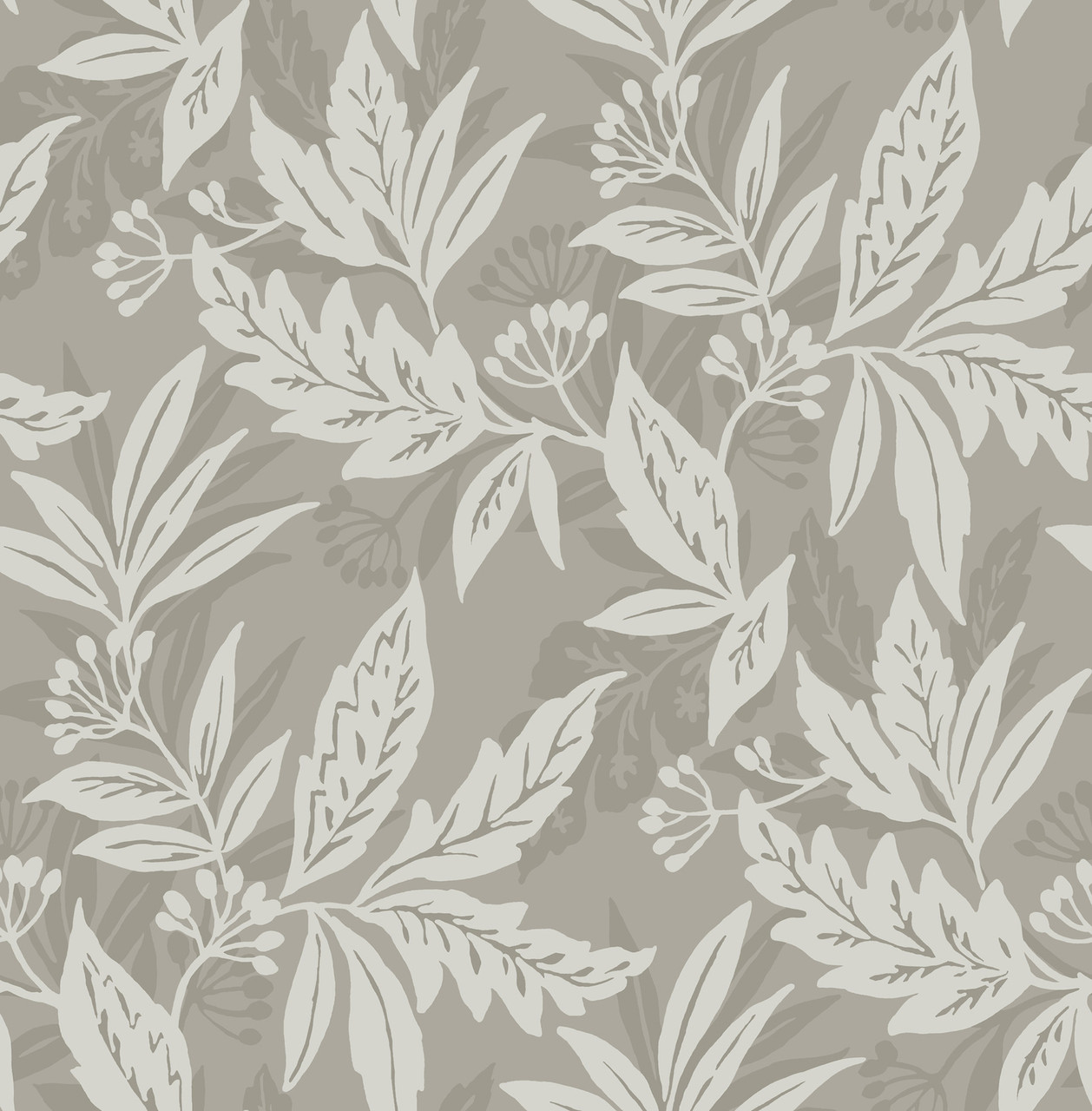 4155-27327 - Anita Pewter Woodland Floral Wallpaper. Enjoy the luxury of grasscloth without the high maintenance. This faux-woven design mimics the look of natural fibers beautifully. Its soft grey tones provide a neutral, sophisticated backdrop for any decor. Unlike real sisal, this non-woven wallpaper is washable and easy to clean. It is the perfect choice for coastal-inspired or "quiet luxury" interiors.. The width in (in) 20.5 X 33 product length in (ft) covering About 56.4 square feet. Product Match is Straight. Product Repeat is 20.9. Material is Non Woven. Adhesion Type is Unpasted - Washable - Strippable. The Color is Greys