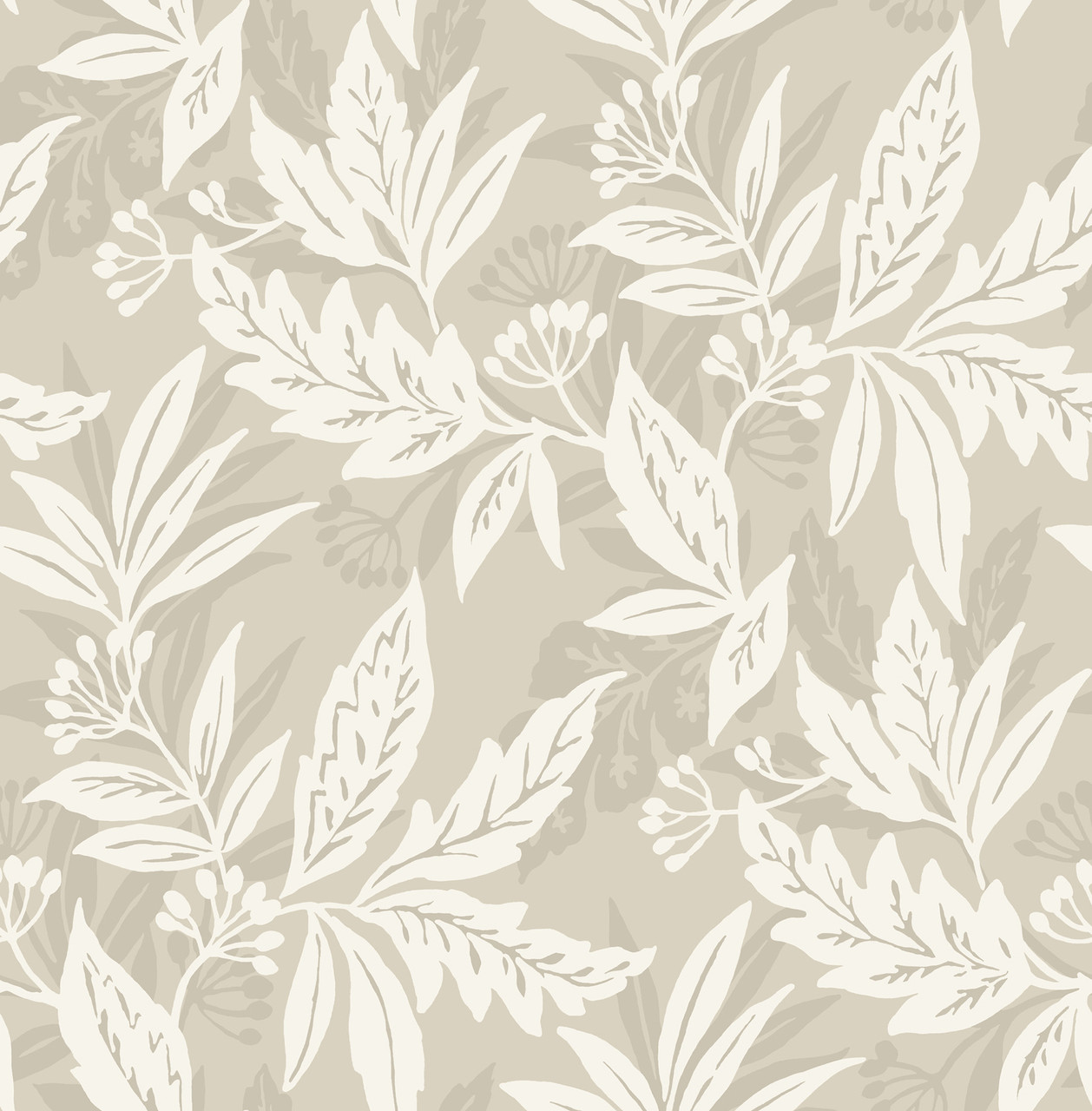 4155-27328 - Anita Beige Woodland Floral Wallpaper. Enjoy the luxury of grasscloth without the high maintenance. This faux-woven design mimics the look of natural fibers beautifully. Its soft grey tones provide a neutral, sophisticated backdrop for any decor. Unlike real sisal, this non-woven wallpaper is washable and easy to clean. It is the perfect choice for coastal-inspired or "quiet luxury" interiors.. The width in (in) 20.5 X 33 product length in (ft) covering About 56.4 square feet. Product Match is Straight. Product Repeat is 20.9. Material is Non Woven. Adhesion Type is Unpasted - Washable - Strippable. The Color is Neutrals