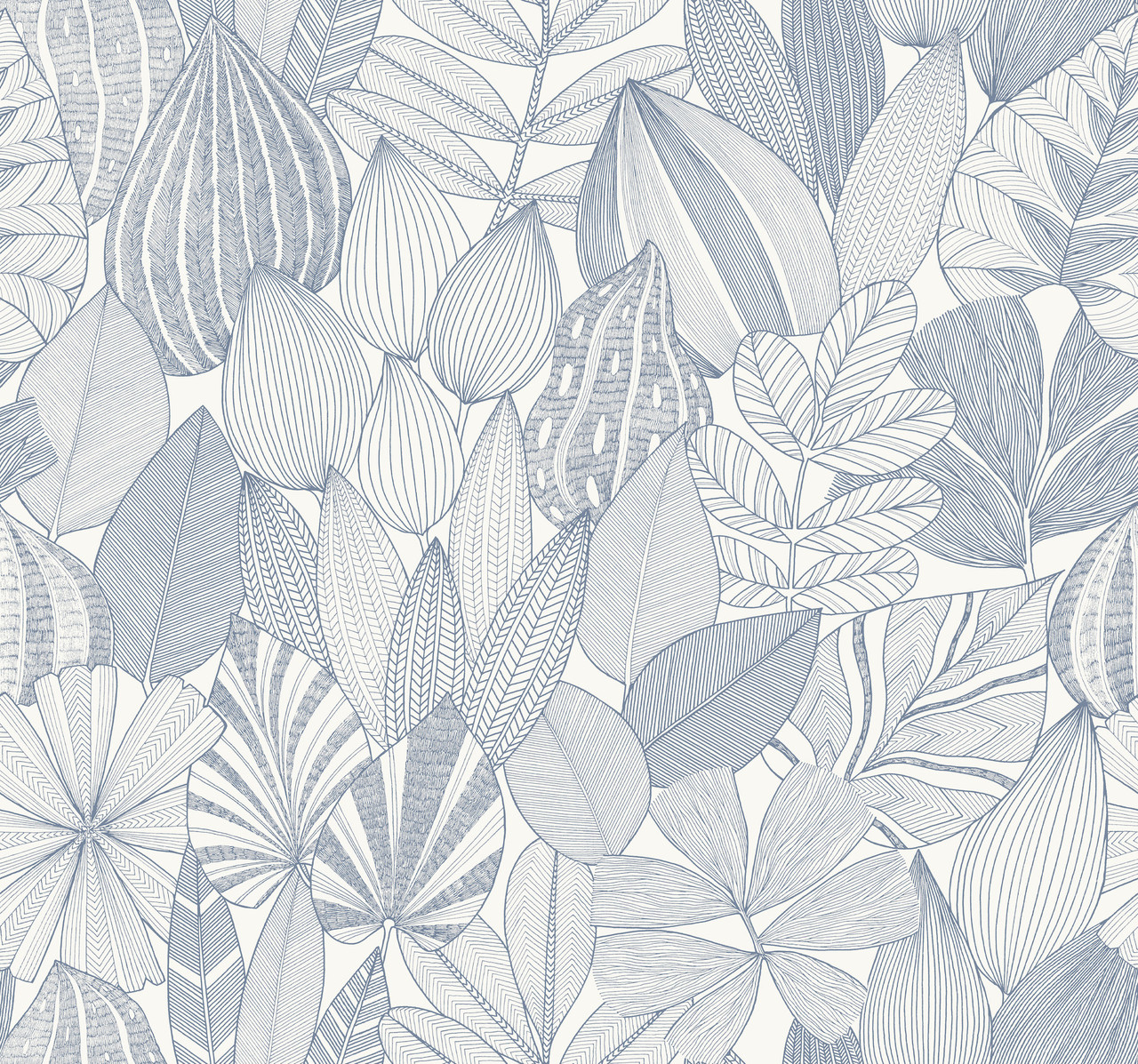 4155-72812 - Mathias Blue Botanical Wallpaper. Enjoy the luxury of grasscloth without the high maintenance. This faux-woven design mimics the look of natural fibers beautifully. Its soft grey tones provide a neutral, sophisticated backdrop for any decor. Unlike real sisal, this non-woven wallpaper is washable and easy to clean. It is the perfect choice for coastal-inspired or "quiet luxury" interiors.. The width in (in) 27 X 27 product length in (ft) covering About 60.8 square feet. Product Match is Straight. Product Repeat is 25.25. Material is Non Woven. Adhesion Type is Unpasted - Washable - Strippable. The Color is Blues