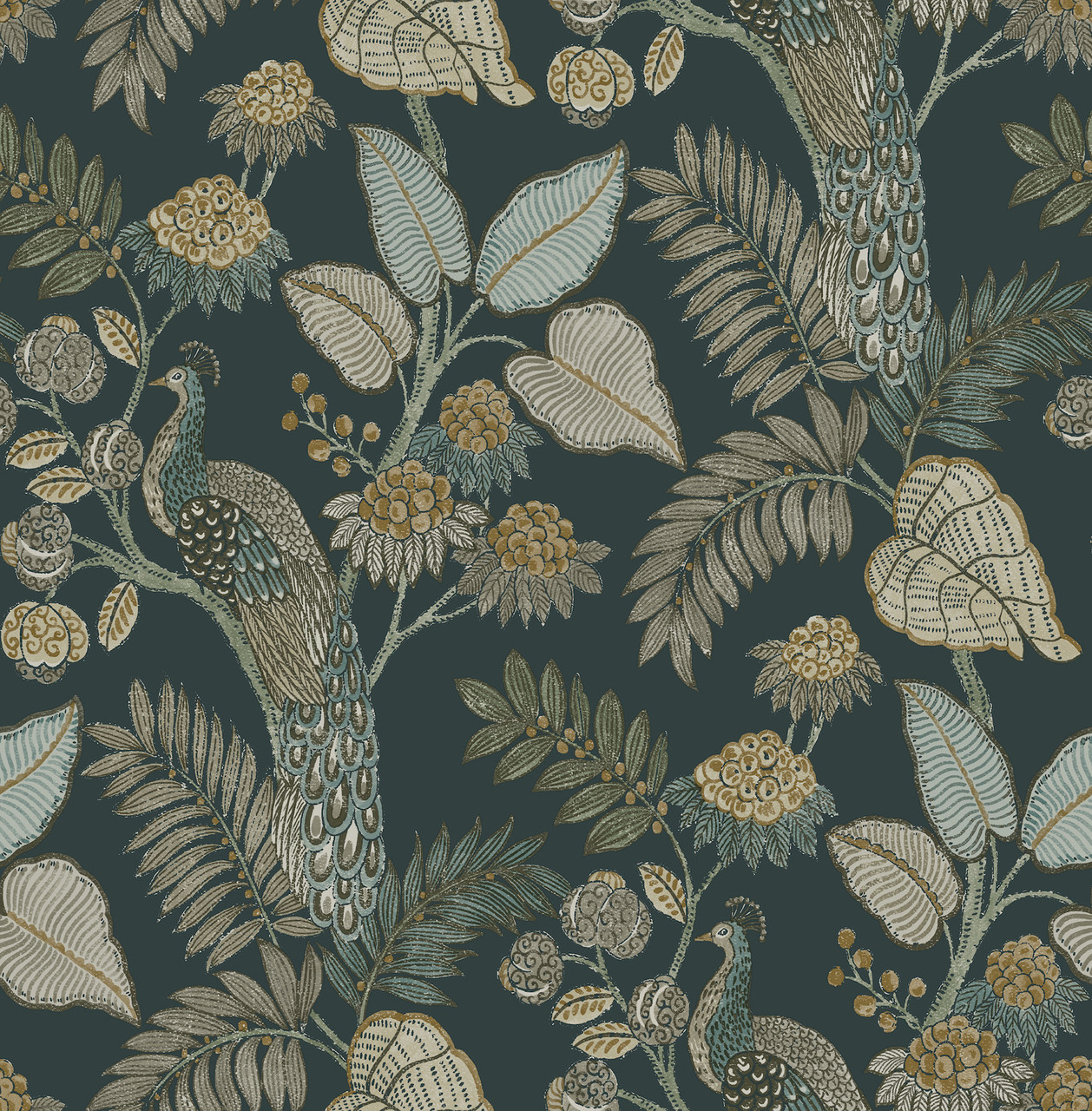 4173-27645 - Geneva Sea Green Peacock Paradise Wallpaper. Infuse your home with charm and personality. This whimsical topiary print features blooming flowers and small songbirds. The warm apricot background adds a cheerful glow to your space. It balances classic Chinoiserie style with a modern, playful twist. Ideal for a vibrant powder room or a creative dining space.. The width in (in) 20.5 X 33 product length in (ft) covering About 56.4 square feet. Product Match is Straight. Product Repeat is 20.9. Material is Non Woven. Adhesion Type is Unpasted - Washable - Strippable. The Color is Greens