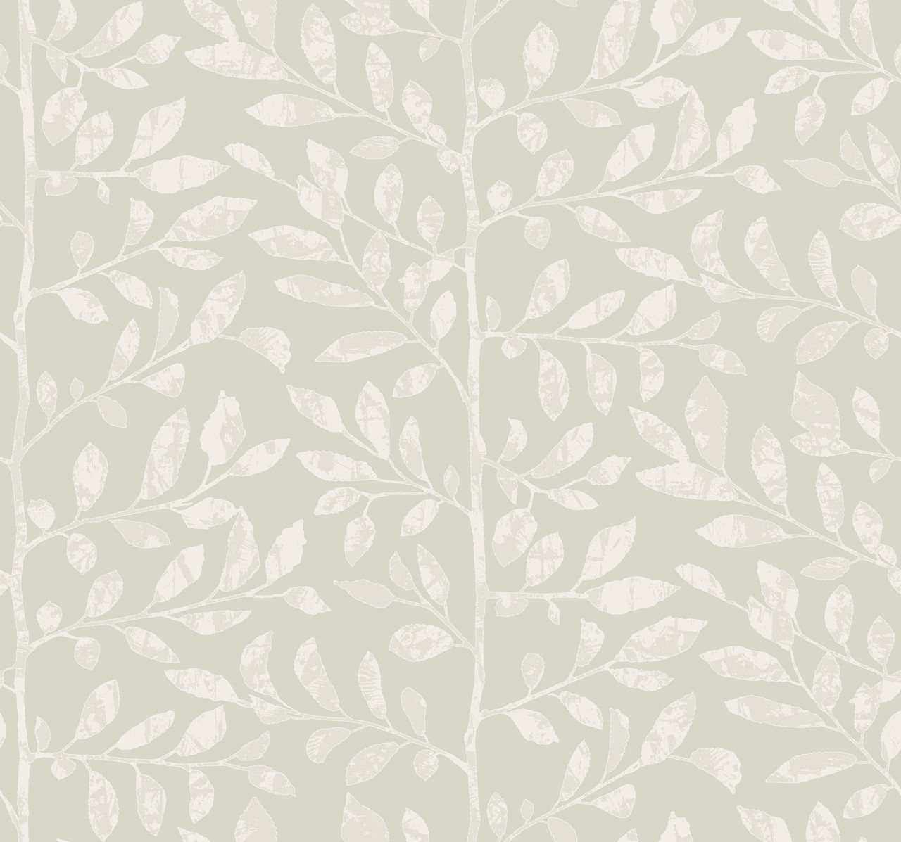 4177-83307 - Sagecrest Light Grey Sapling Wallpaper. Infuse your home with charm and personality. This whimsical topiary print features blooming flowers and small songbirds. The warm apricot background adds a cheerful glow to your space. It balances classic Chinoiserie style with a modern, playful twist. Ideal for a vibrant powder room or a creative dining space.. The width in (in) 27 X 27 product length in (ft) covering About 60.8 square feet. Product Match is Straight. Product Repeat is 25.25. Material is Non Woven. Adhesion Type is Unpasted - Washable - Strippable. The Color is Greys