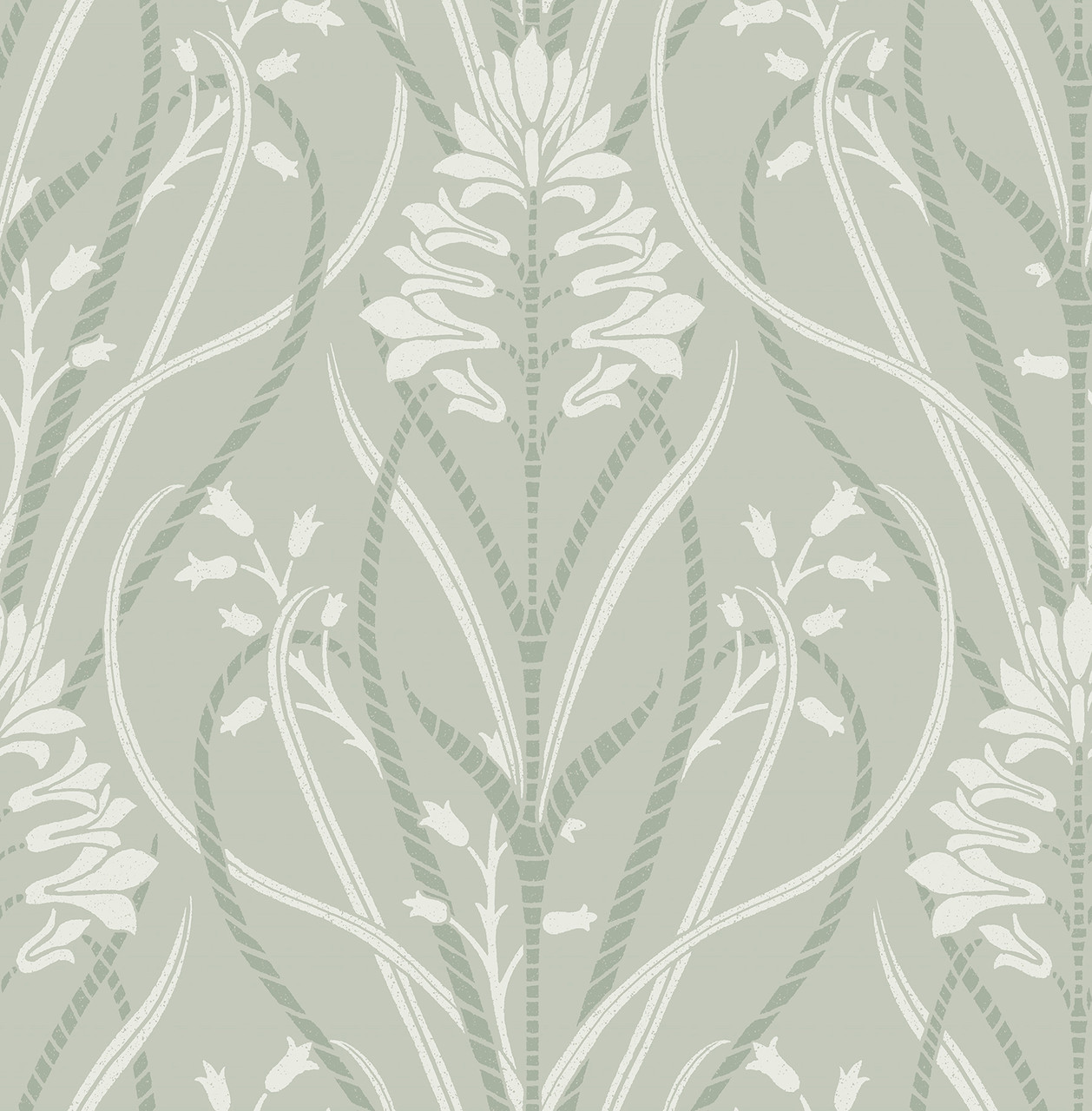4198-27822 - Rosalind Sage Iris Damask Wallpaper. Infuse your home with charm and personality. This whimsical topiary print features blooming flowers and small songbirds. The warm apricot background adds a cheerful glow to your space. It balances classic Chinoiserie style with a modern, playful twist. Ideal for a vibrant powder room or a creative dining space.. The width in (in) 20.5 X 33 product length in (ft) covering About 56.4 square feet. Product Match is Half Drop. Product Repeat is 20.9. Material is Non Woven. Adhesion Type is Unpasted - Washable - Strippable. The Color is Greens