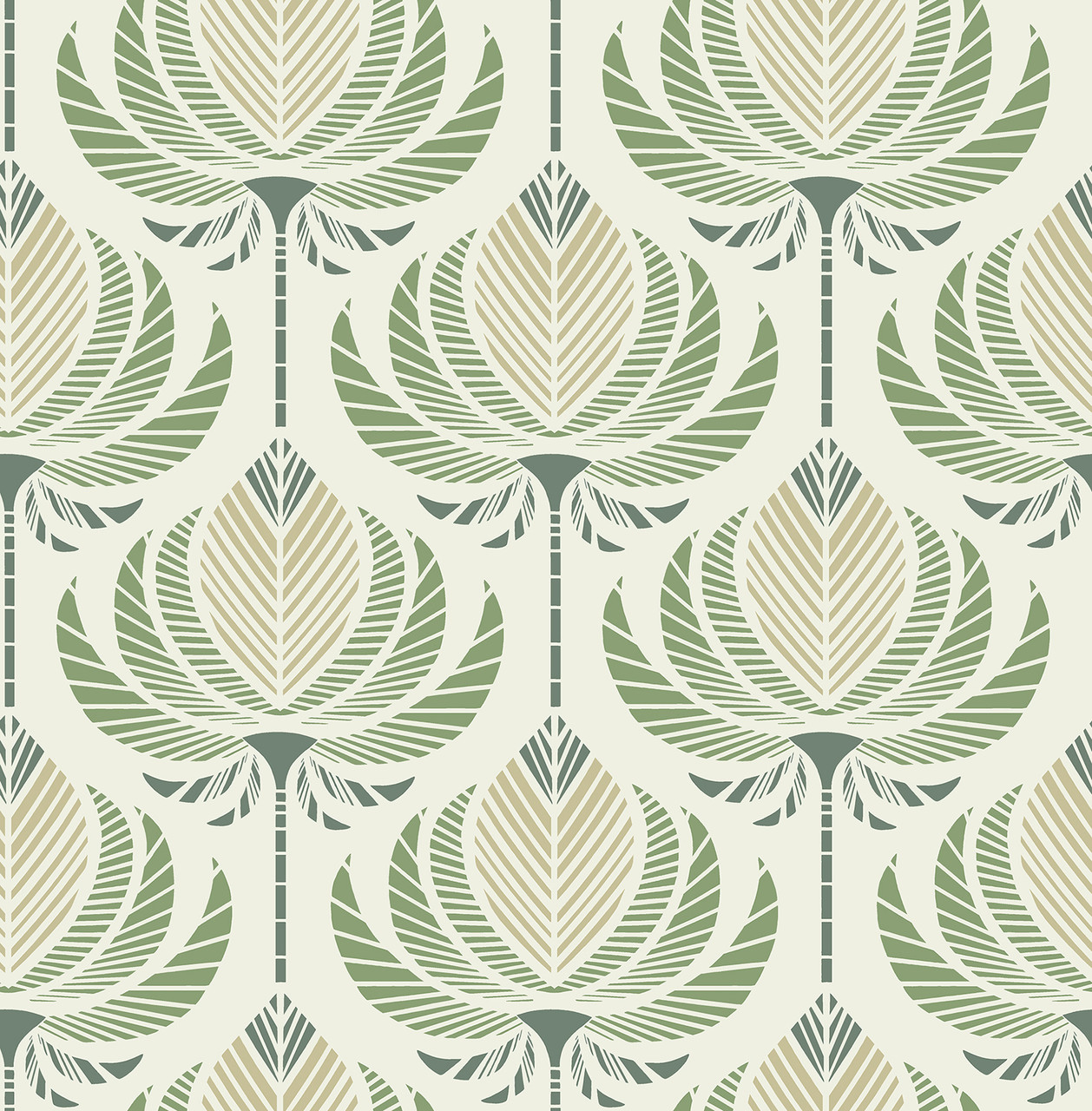 4198-27830 - Ferrenby Green Floral Fan Wallpaper