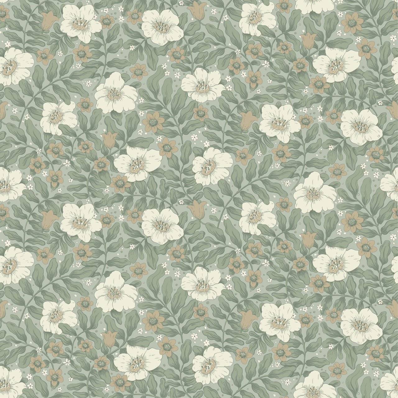 4201-48020 - Maggan Sea Green Floral Trail Wallpaper. Infuse your home with charm and personality. This whimsical topiary print features blooming flowers and small songbirds. The warm apricot background adds a cheerful glow to your space. It balances classic Chinoiserie style with a modern, playful twist. Ideal for a vibrant powder room or a creative dining space.. The width in (in) 20.9 X 33 product length in (ft) covering About 57.5 square feet. Product Match is Straight. Product Repeat is 10.4. Material is Non Woven. Adhesion Type is Unpasted - Washable - Strippable. The Color is Greens