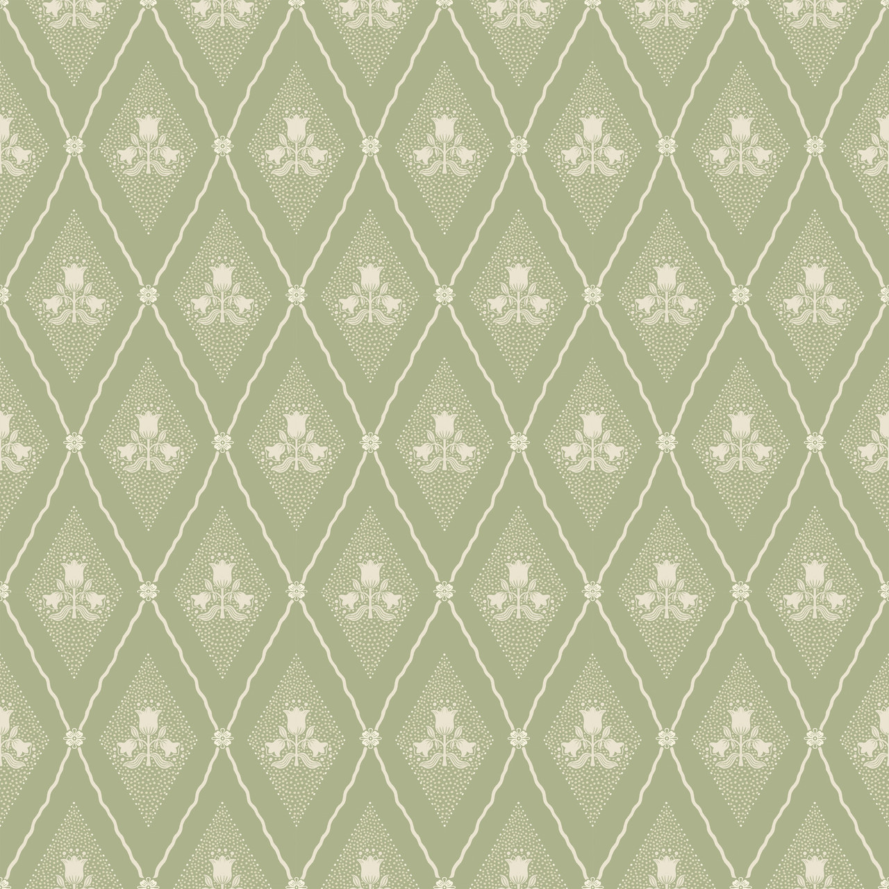 4201-48030 - Alma Moss Diamond Floral Wallpaper. Infuse your home with charm and personality. This whimsical topiary print features blooming flowers and small songbirds. The warm apricot background adds a cheerful glow to your space. It balances classic Chinoiserie style with a modern, playful twist. Ideal for a vibrant powder room or a creative dining space.. The width in (in) 20.9 X 33 product length in (ft) covering About 57.5 square feet. Product Match is Straight. Product Repeat is 6.9. Material is Non Woven. Adhesion Type is Unpasted - Washable - Strippable. The Color is Greens