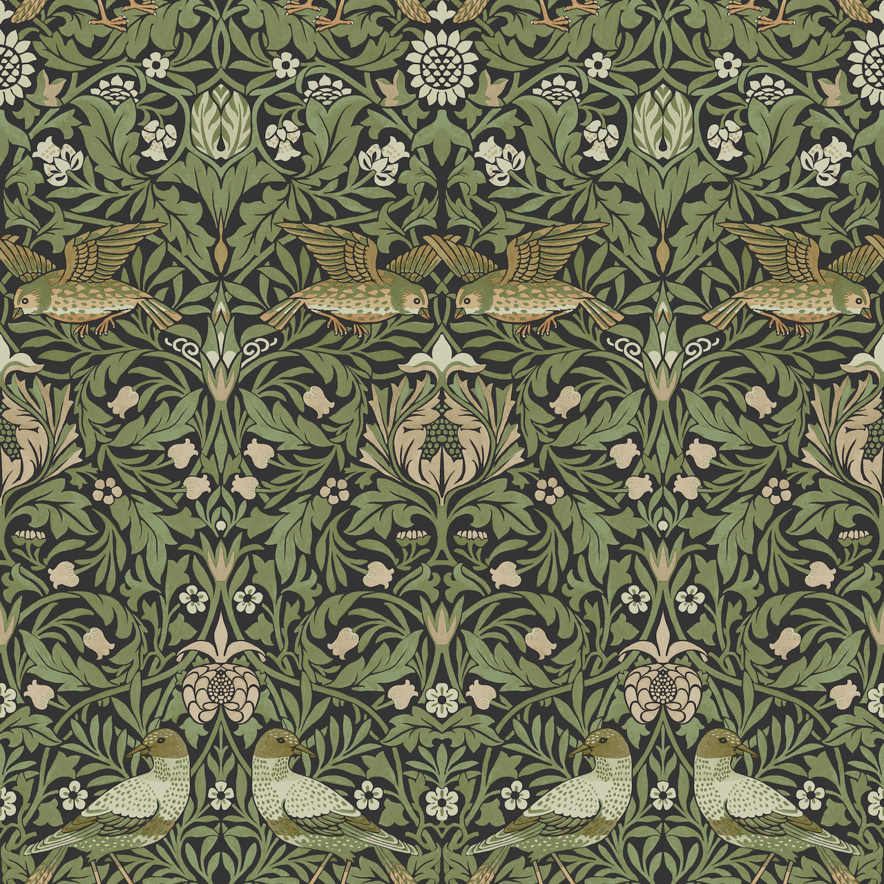 4171-82063 - Bird Green Floral Thicket Wallpaper. English designer William Morris beautiful work continues to brighten homes across the world. Hidden treasures volume two does amplify and echoes some of Williams work from the past. His contemporary designs are what most designers look for to decorate their projects.. Product Specific: Unpasted - Non Woven - Washable - Strippable. It measures 20.9 inches wide by 33. feet long covering About 57.5 square feet. The color is Greens