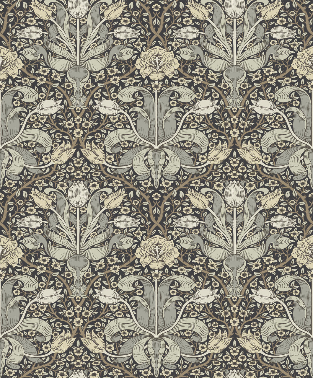 4171-82068 - Spring Thicket Blue Tulip Damask Wallpaper. English designer William Morris beautiful work continues to brighten homes across the world. Hidden treasures volume two does amplify and echoes some of Williams work from the past. His contemporary designs are what most designers look for to decorate their projects.. Product Specific: Unpasted - Non Woven - Washable - Strippable. It measures 20.9 inches wide by 33. feet long covering About 57.5 square feet. The color is Blues