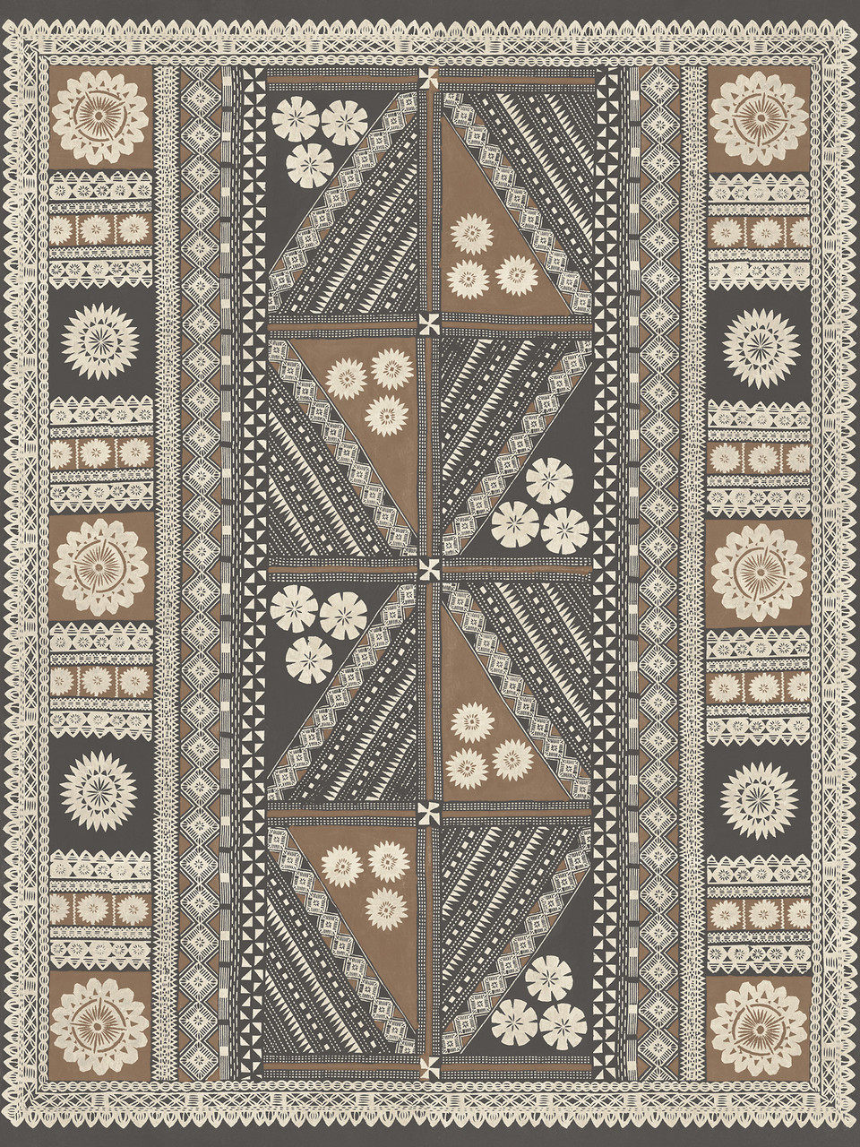 AB3057M - Tapa Sienna Wall Mural. Vintage botanical prints inspired by artisanal block printing celebrate the beauty of nature and gardens. This Tapa Sienna Wall Mural measures approximately 27 inches wide by 9 feet long, measuring. 3 Panels - Measures 6.75-ft wide by 9-ft tall when assembled . Product Specific: Unpasted - Non Woven - Washable - Strippable. Product Repeat . Product Match . The color is Sienna