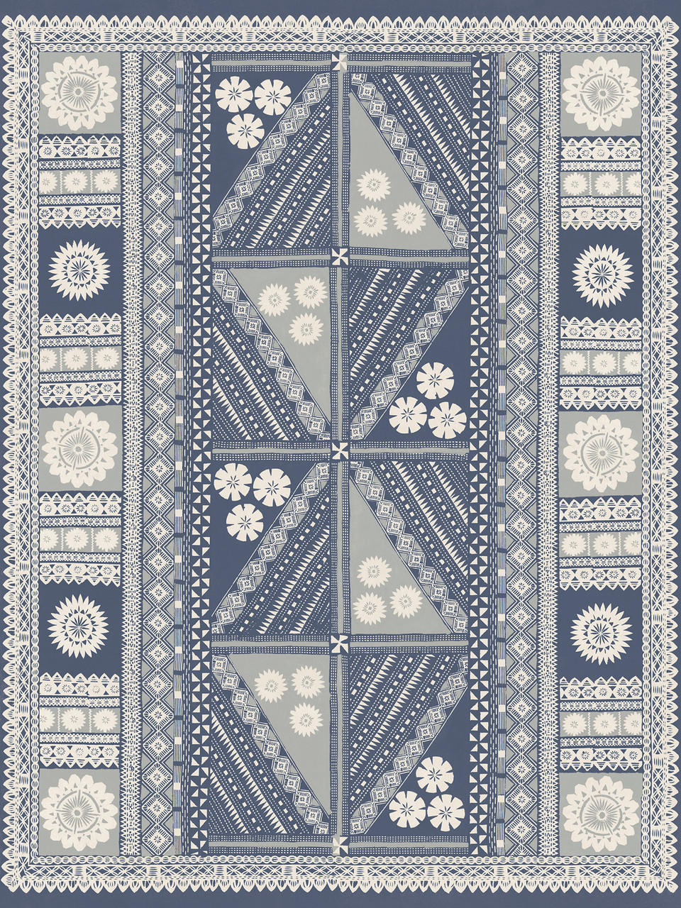 AB3058M - Tapa Indigo Wall Mural. Vintage botanical prints inspired by artisanal block printing celebrate the beauty of nature and gardens. This Tapa Indigo Wall Mural measures approximately 27 inches wide by 9 feet long, measuring. 3 Panels - Measures 6.75-ft wide by 9-ft tall when assembled . Product Specific: Unpasted - Non Woven - Washable - Strippable. Product Repeat . Product Match . The color is Indigo