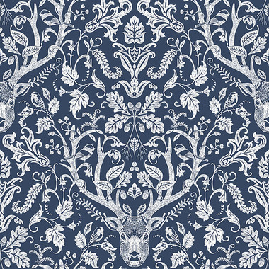 - Birch & Sparrow 3118-12703 - Kiwassa Antler Damask Wallpaper Navy. A design born out of combining the beauty of a stag's antlers and the elegant ancient damask weaving in a bold Navy shade with white textured details. Nature and the indoors intersect gracefully through this pattern. Allow your home to radiate elegance through the wallpaper's design. The Birch & Sparrow collection provides you wallpapers that give your home a warm feel with their wooden and rustic imagery.