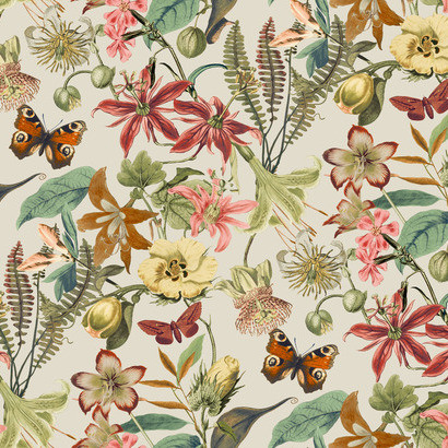 Click here for our calculator | Wallpaper Buying GuideBL1724 - Light Taupe & Coral Butterfly House Wallpaper. Blooms second edition from York wall coverings is the florals of love in many different styles and colors for your decorations. It completely complements whatever you are thinking to create on your wall. It is packaged and sold in double roll. Each double roll would cover About 72 square feet. The color of this pattern is Light Taupe & Coral. It is Unpasted' Non Woven' Non Woven' Washable' Strippable. The match is Straight and Repeat is 24