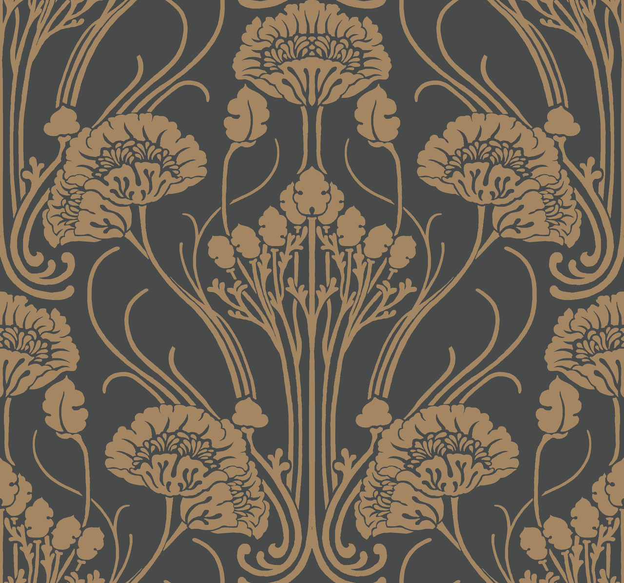CA1564 - Nouveau Damask Black Wallpaper. Discover the art of artisanal block printing on our collection of vintage prints inspired by botanical garden beauty. This Nouveau Damask Black Wallpaper measures approximately 27 inches wide by 27 feet long, measuring. About 60.8 square feet . Product Specific: Unpasted - Non Woven - Washable - Strippable. Product Repeat 25.25. Product Match Straight. The color is Black